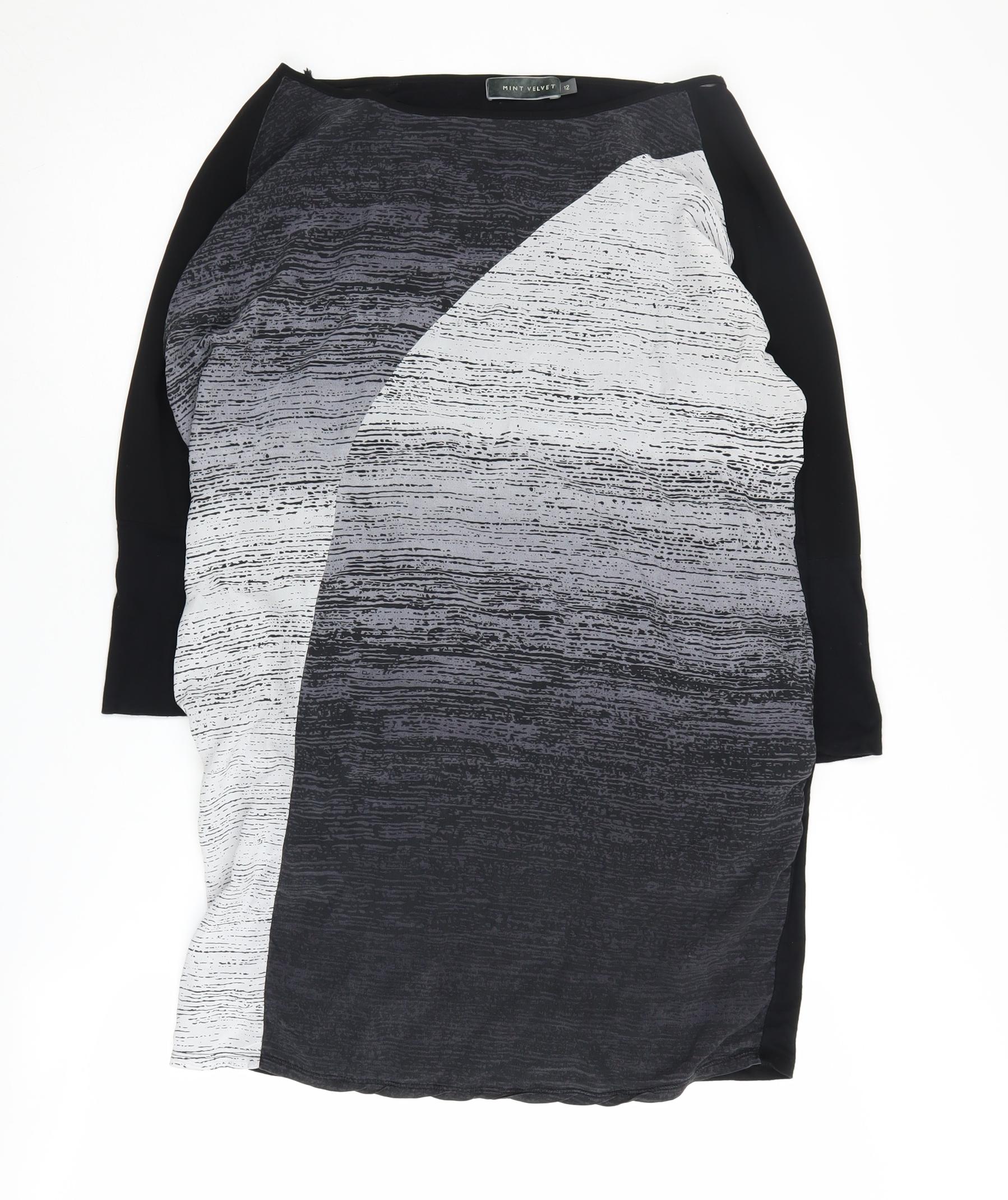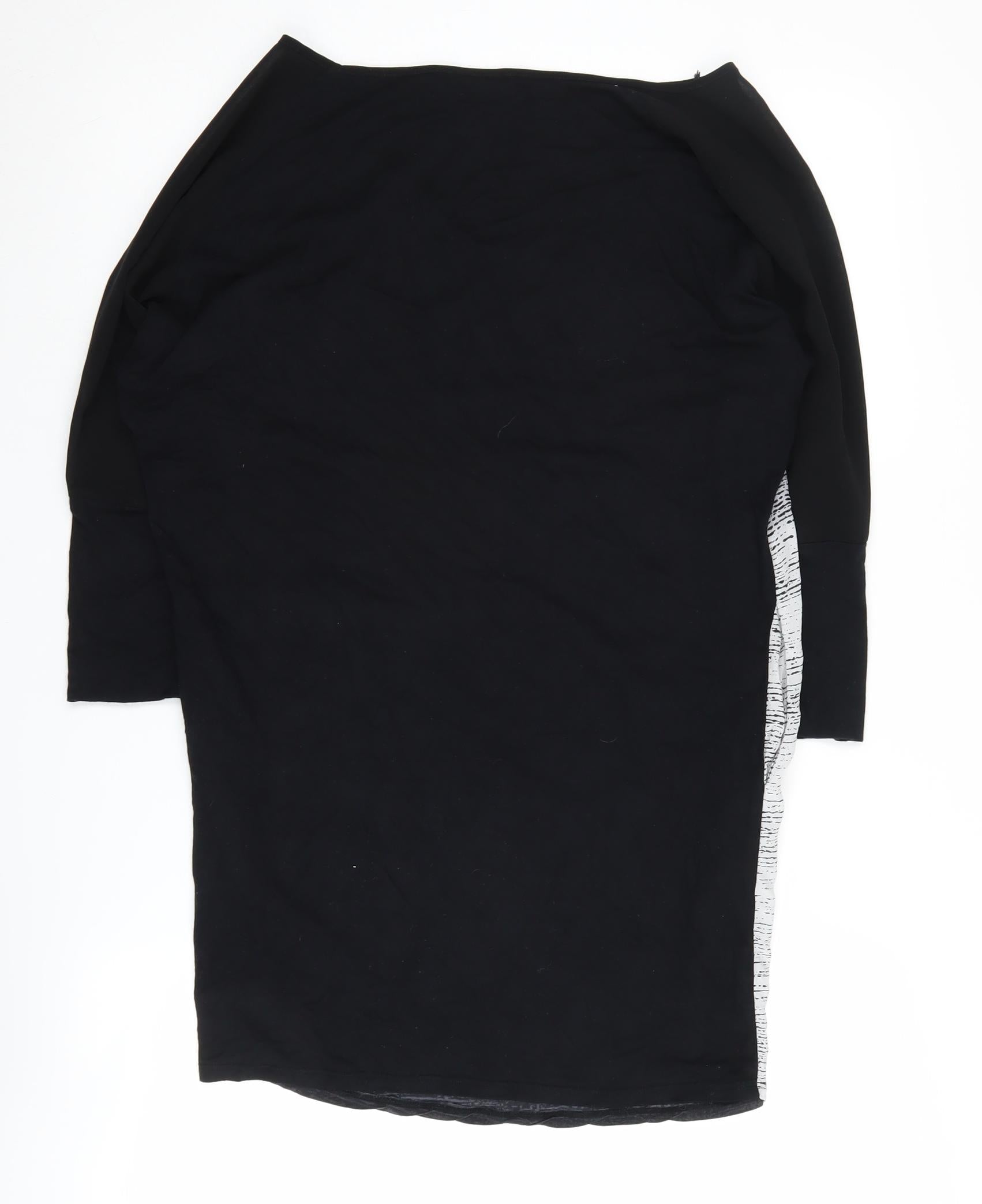 BH Women's Black Tunic Blouse Size 12 3/4 Sleeve Viscose Top