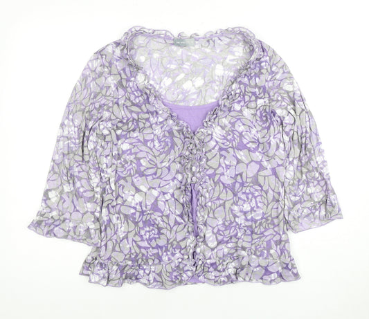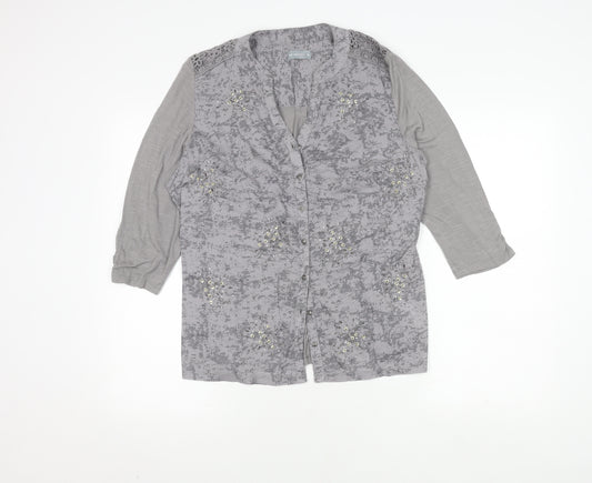 White Stuff Women's Grey Floral Wrap Blouse Size 14