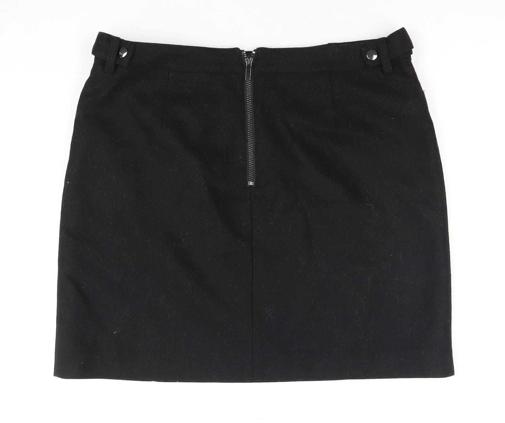 Enhance your wardrobe with this elegant Mint Velvet knee-length pencil skirt. Designed for modern women, this skirt comes in a sleek black hue, perfect for casual occasions. The minimalist design is accentuated by stylish zip accents that add a touch of edginess. This versatile skirt falls at knee length, suitable for both work and casual outings. With a straight and pencil silhouette, it complements your figure, offering a sophisticated look. The Zip closure in the back ensures ease of wear, while maintaining a sleek appearance. Crafted with attention to detail, this skirt is ideal for women seeking a chic and timeless piece. Although in excellent condition, with minimal wear, please note it does not come with original tags. Available in a size 12 regular fit, it's a staple piece every woman should own. Perfect for pairing with blouses or casual tops, it transitions seamlessly from day to night. Elevate your style with this beautiful Mint Velvet skirt today.