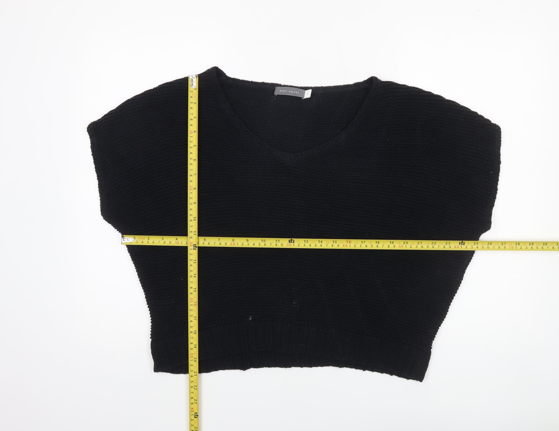 Stay effortlessly stylish and comfortable with this gorgeous black sleeveless jumper from Mint Velvet, a brand renowned for chic and contemporary wardrobe staples. Crafted from a high-quality cotton and polyamide blend, the knit structure provides a soft, breathable feel while ensuring lasting durability. The simple yet flattering silhouette features a relaxed fit and a deep V-neckline, making it perfect for layering over shirts, blouses, or even dresses. The short cap-style sleeves and ribbed hemline add a touch of modern structure to this otherwise minimalist design.This versatile piece is ideal for transitional weather, carrying you elegantly from spring through to autumn and even into winter when paired with a jacket. Designed with everyday wear in mind, the lightweight and breathable nature of the fabric keeps you comfortable while maintaining its shape and softness wash after wash. The solid black colour offers endless styling options — pair it with tailored trousers for a smart-casual office look, or combine it with jeans and ankle boots for a polished weekend outfit.In excellent pre-loved condition with only light signs of gentle wear, this timeless Mint Velvet jumper represents a fantastic opportunity to own a premium-quality piece at a great value. Its versatility and minimalist chic make it an essential addition to any capsule wardrobe, perfect for layering through the seasons while exuding understated sophistication. Ideal for the woman who values quality, comfort and effortless everyday elegance, this jumper embodies Mint Velvet’s refined yet relaxed approach to fashion.