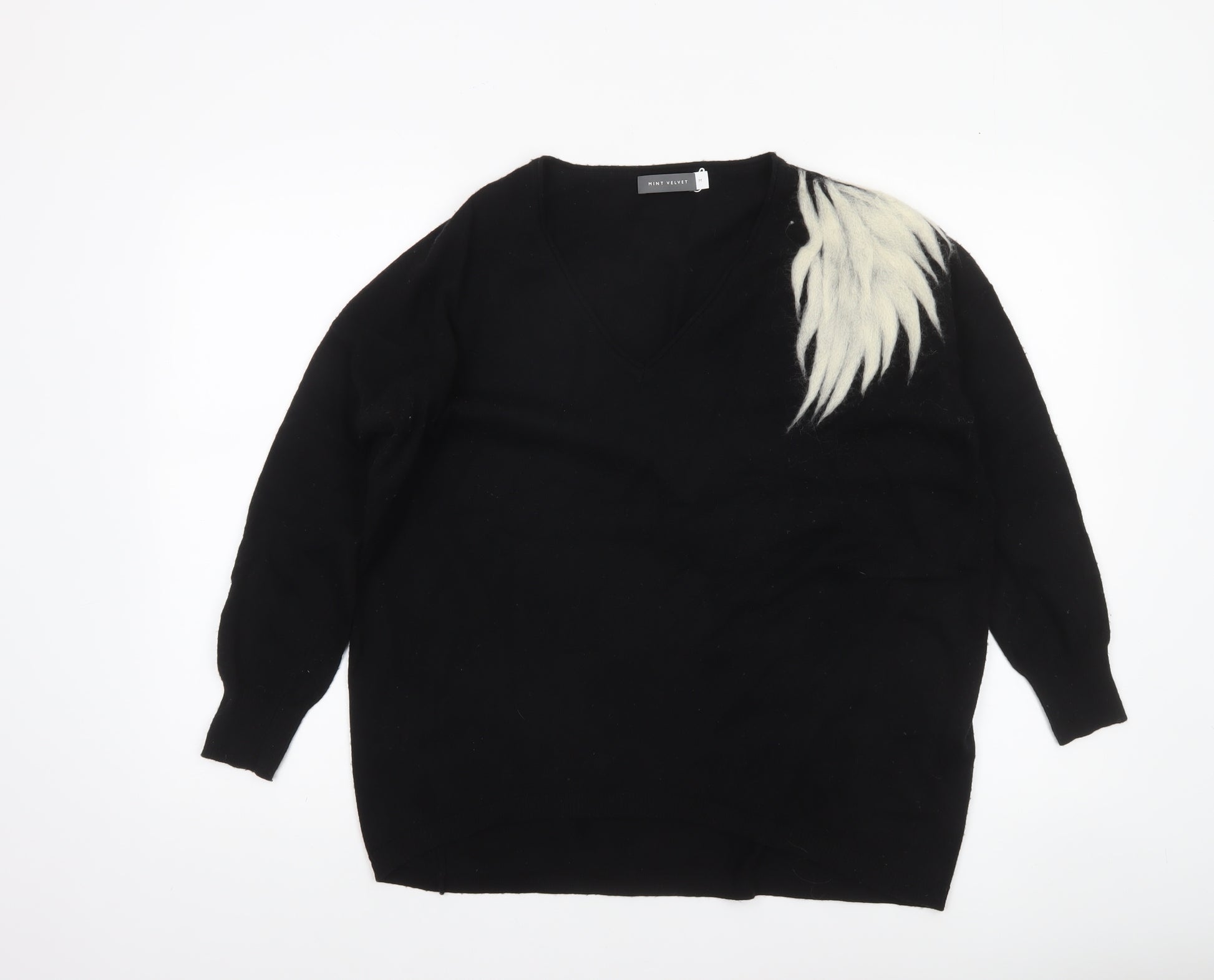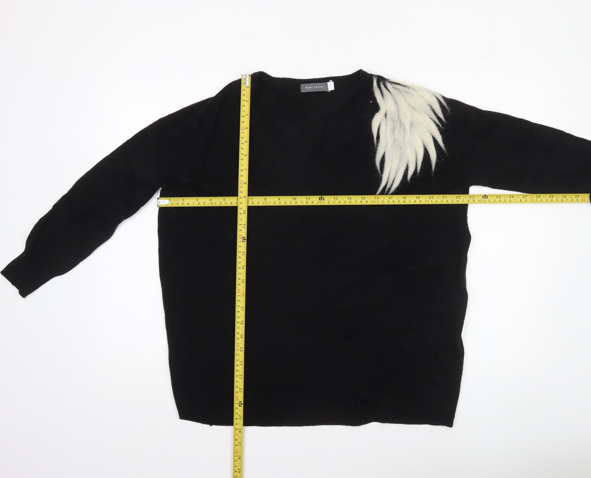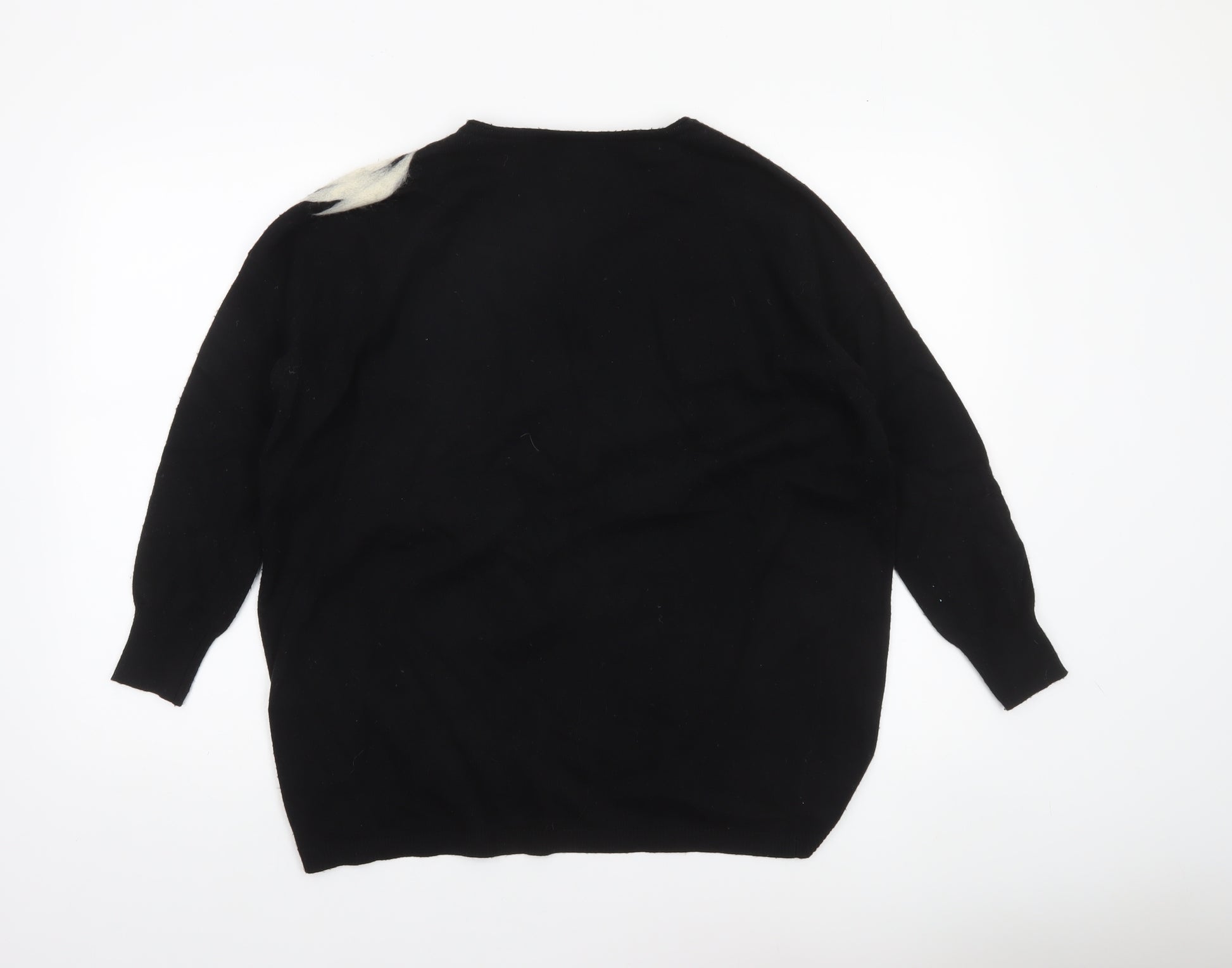 Women's Black V-Neck Wool Blend Pullover Jumper Size M