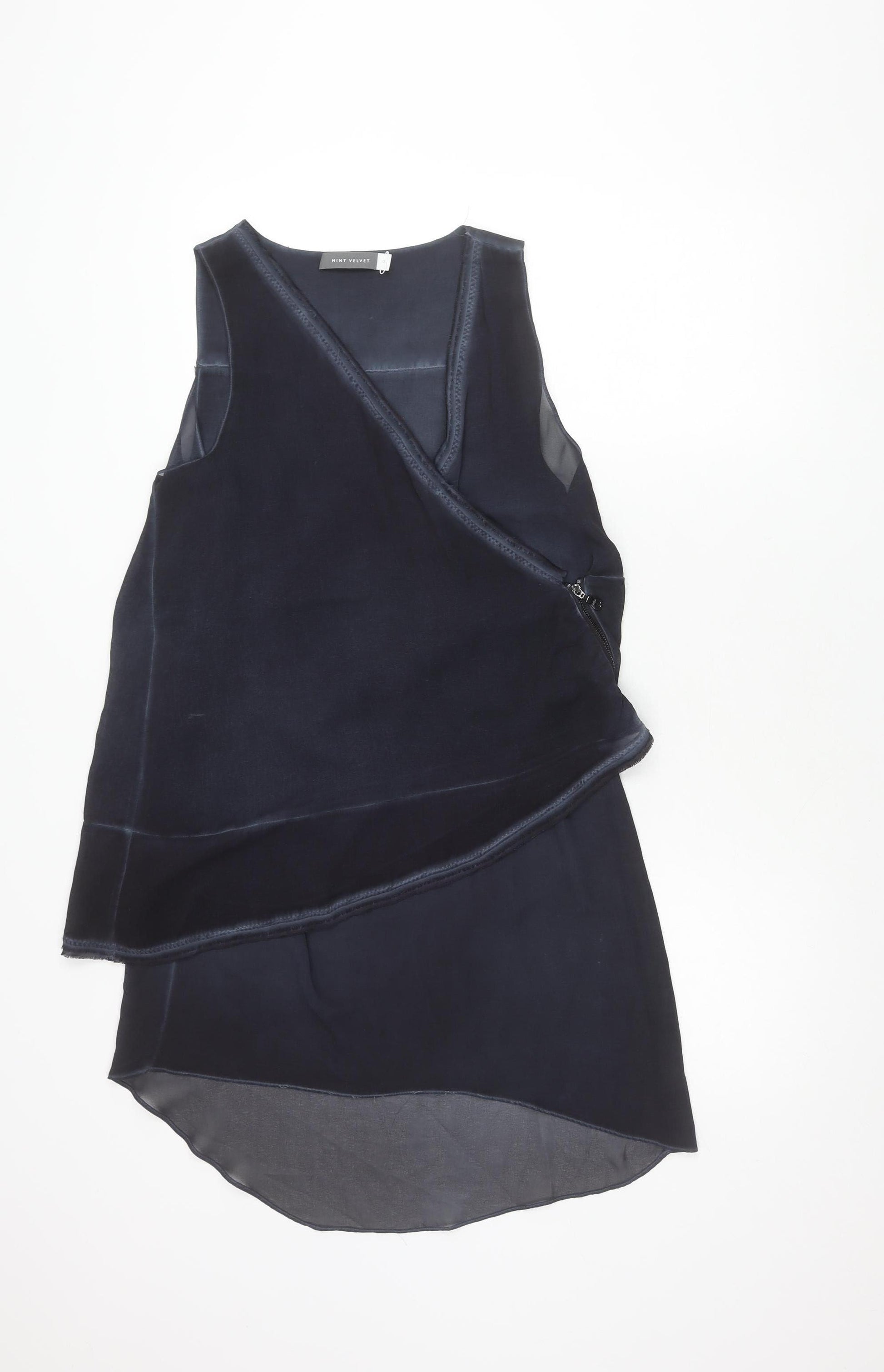 Enhance your wardrobe with this stylish Mint Velvet top, designed for the fashion-forward woman. Crafted in a deep blue hue, this sleeveless wrap top seamlessly integrates elegance and comfort. Made entirely from high-quality polyester, it offers not only a smooth fit but also easy care, being machine washable for convenience. Its regular fit flatters your silhouette, making it perfect for various casual and semi-formal occasions. The zip closure adds a modern touch, while the wrap style introduces a dynamic flair to any ensemble. Whether paired with jeans for a relaxed look or a skirt for more formal events, this top is a versatile addition to your collection. Experience the ease of style with Mint Velvet's exquisite craftsmanship in every detail.