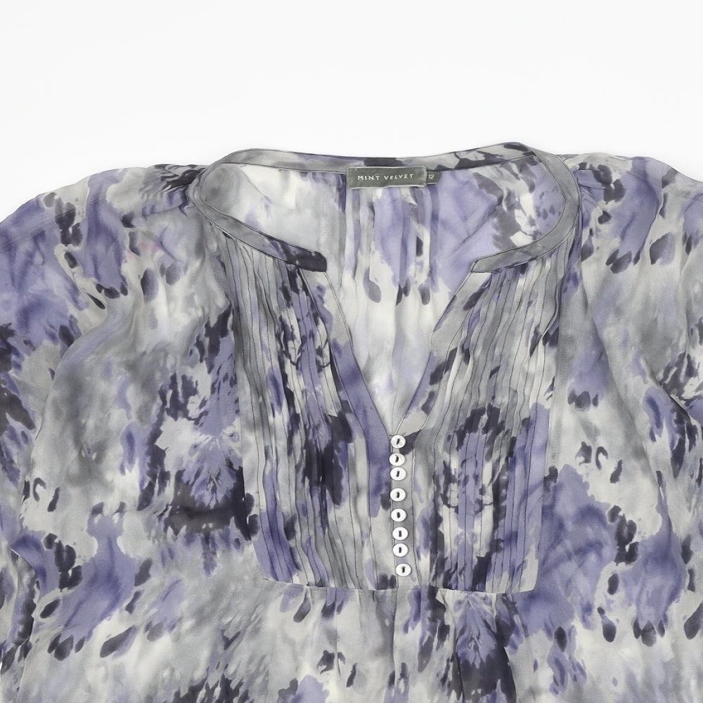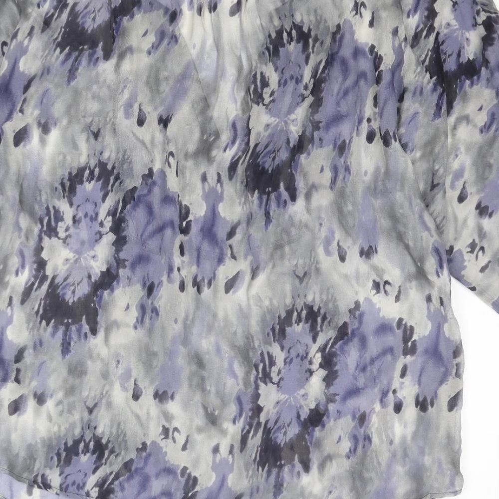 Womens Grey Geometric Polyester Basic Blouse Size 12 V-Neck