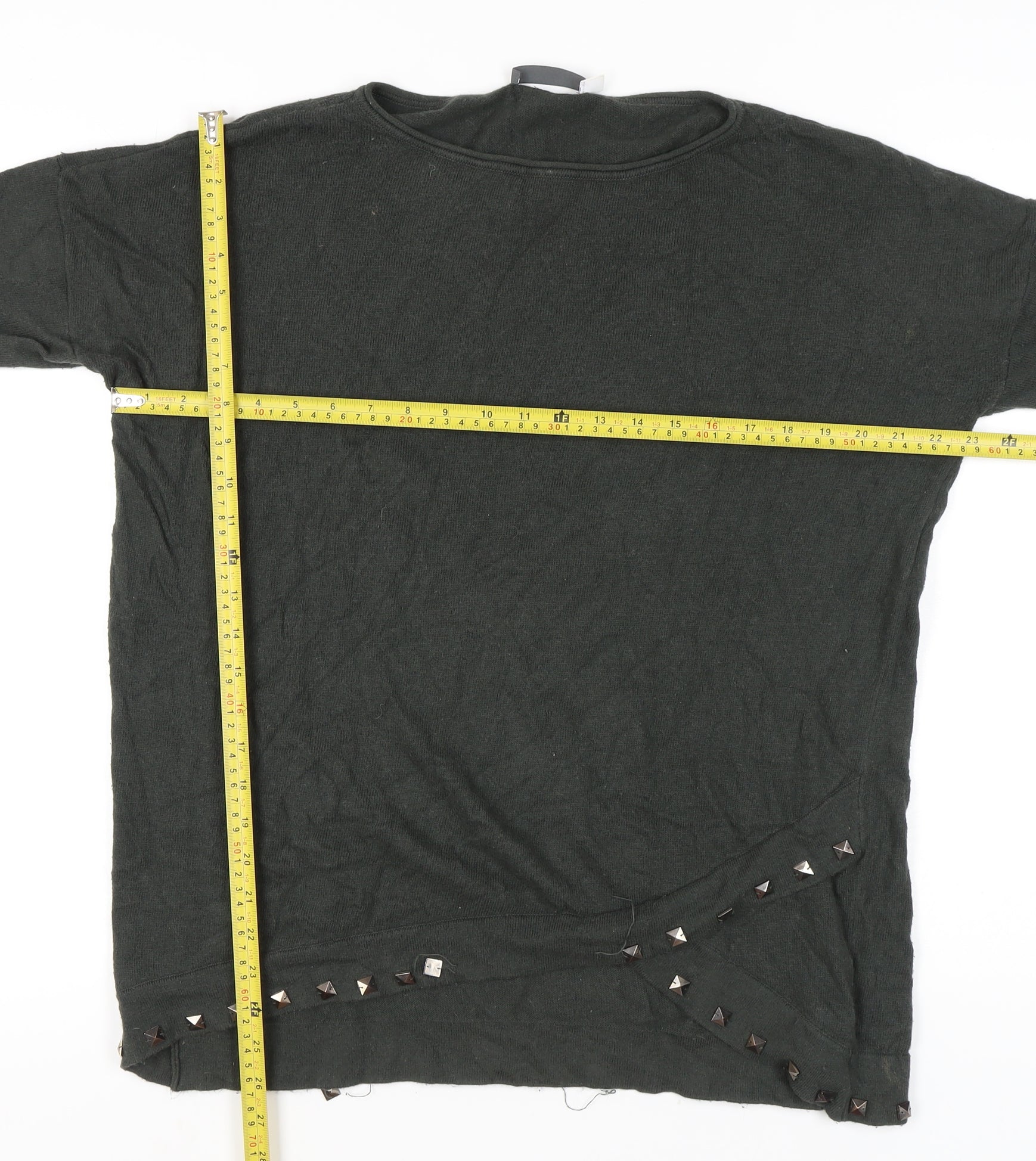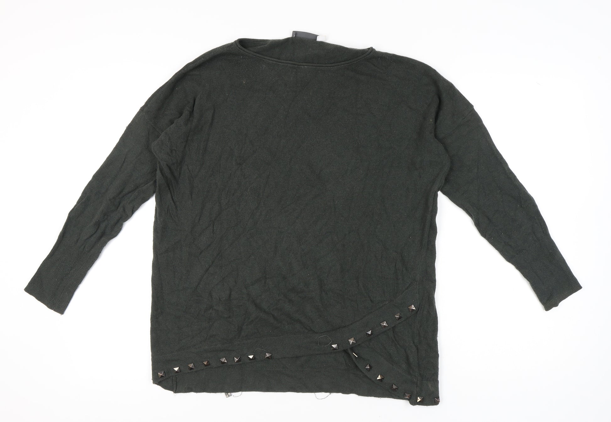 Elevate your style with this chic Mint Velvet women's jumper in a versatile grey shade. Featuring stylish studded accents, this jumper adds a touch of edgy sophistication to your everyday wardrobe. Designed with long sleeves, it's perfect for layering on colder days, ensuring you stay warm and fashionable throughout the season. Made from high-quality cotton, this jumper offers a comfortable and cozy fit, ideal for all-day wear. The relaxed fit and regular size make it a perfect addition to any wardrobe, suitable for casual outings or more laidback occasions. Whether you're heading to a coffee date or running errands, this Mint Velvet jumper is your go-to piece for effortless style. Please note, the jumper shows some light wear, which adds to its charm and character without compromising on quality. Pair it with your favourite jeans or leggings for a complete, stylish look.
