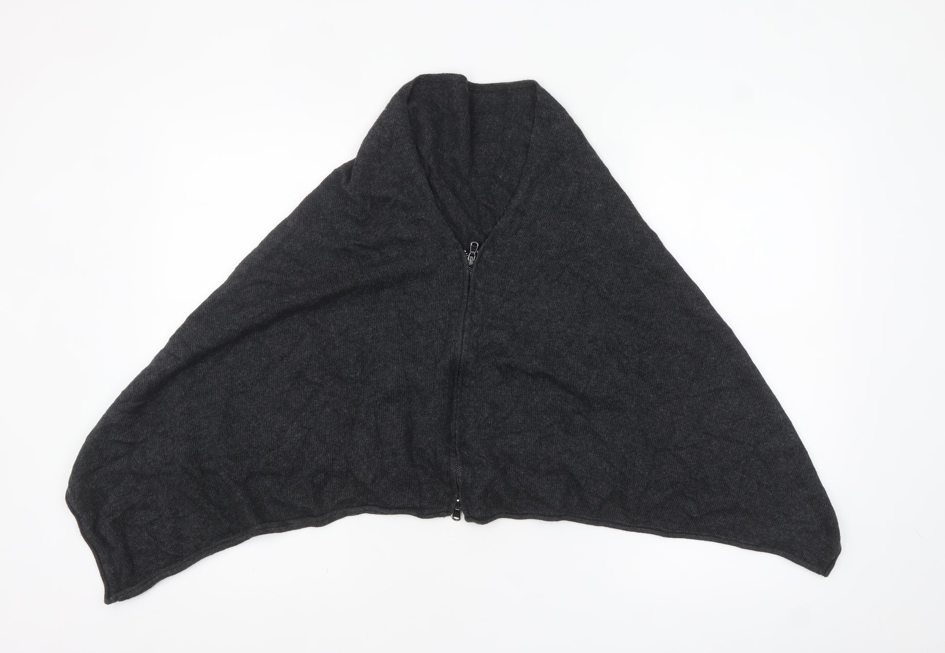 Elevate your cool-weather wardrobe with this effortlessly chic Mint Velvet women's grey cape jumper. Expertly crafted from a luxurious blend of wool and cashmere, this soft knit offers both comfort and understated elegance. Designed in a relaxed, draped silhouette, it falls beautifully over the shoulders to create a sleek, modern look while maintaining maximum comfort and warmth. Featuring a practical full zip front and a flattering V-neckline, this versatile piece is perfect for layering over tops, blouses or dresses, adding a touch of sophistication to any outfit. The minimalist no-pattern design and tight-knit texture give it a timeless appeal that complements both smart and casual styles. Ideal for autumn and winter, this lightweight yet cosy knitwear piece keeps you warm during chilly days without feeling bulky. Whether you're styling it for a casual day out, cosy evening indoors, or layered for travel, this cape jumper delivers effortless style. Pair it with jeans for a relaxed weekend look or over tailored trousers for understated elegance. The beautiful grey hue makes it a versatile addition to any wardrobe, easy to coordinate with a range of colours and accessories. The Mint Velvet touch ensures quality craftsmanship and modern flair, perfect for women seeking refined comfort. This item is in excellent used condition with minimal signs of gentle wear, including a small mark on the back that does not detract from its beauty. Crafted for women who appreciate effortless luxury, this Mint Velvet wool cashmere cape jumper is a wardrobe staple that combines premium materials, comfort, and timeless design. Treat yourself or gift someone special with this soft, stylish and versatile layer that exudes understated sophistication.