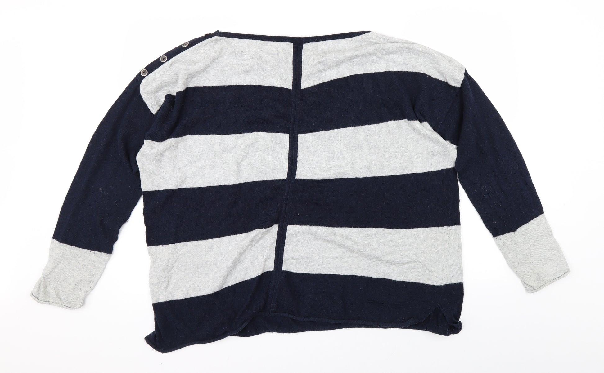 F&F Women's Blue Striped 3/4 Sleeve Pullover Jumper Size 18