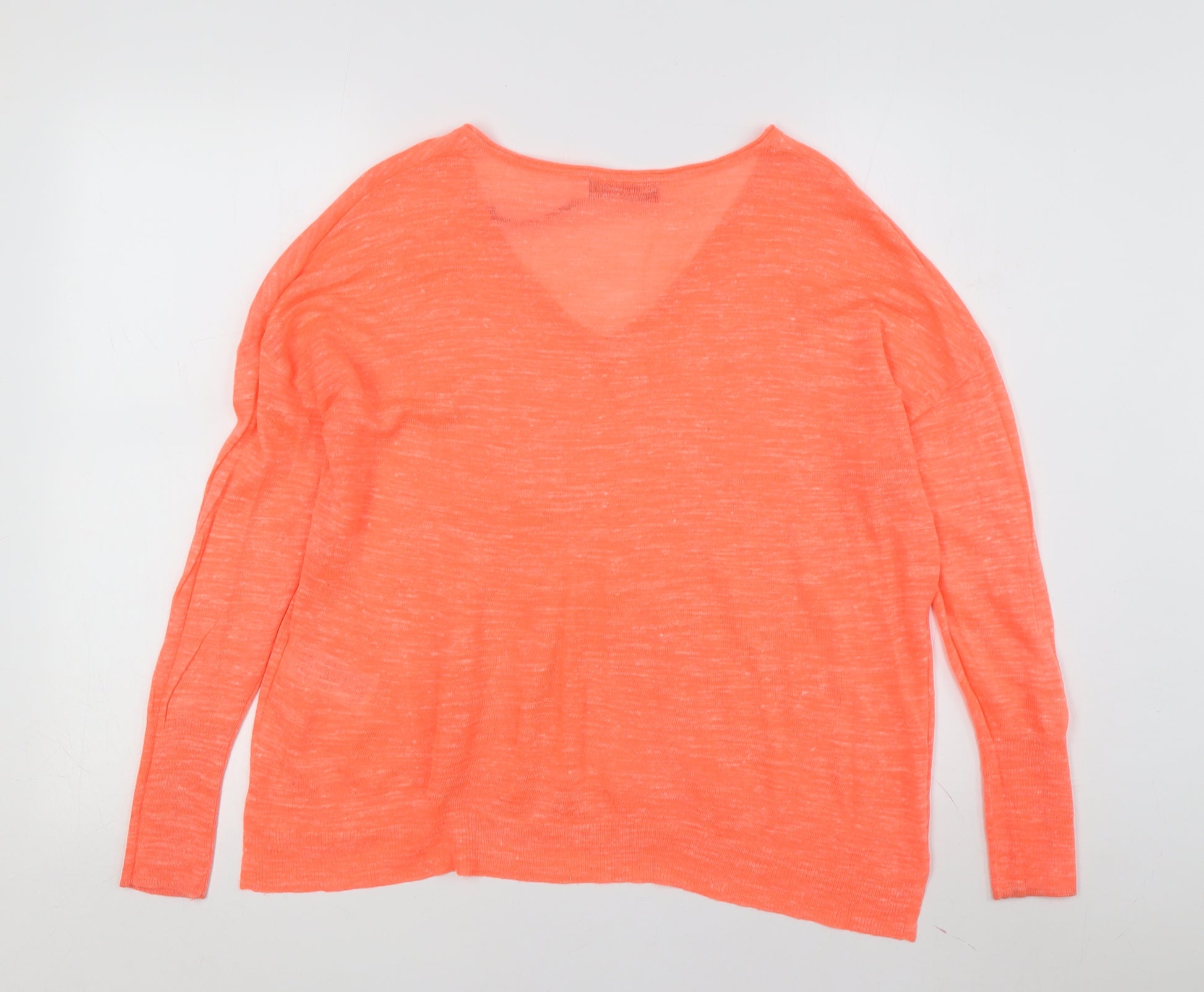 Add a burst of vibrant colour to your wardrobe with this Mint Velvet Women's Orange V-Neck Pullover Jumper in size XS. Made from a comfortable cotton blend and featuring an open-knit fabric, this jumper is lightweight and perfect for the warmer spring and summer months. The V-neckline and relaxed fit offer both style and comfort, making it ideal for casual occasions. Despite having some small holes, this jumper offers fantastic value and a chic look, making it a versatile addition to your casual wear collection. Its bright and bold orange colour paired with a classic design is sure to make an impression. Easy to care for with machine washable convenience, this jumper is ready to become a beloved piece in your daily rotation.
