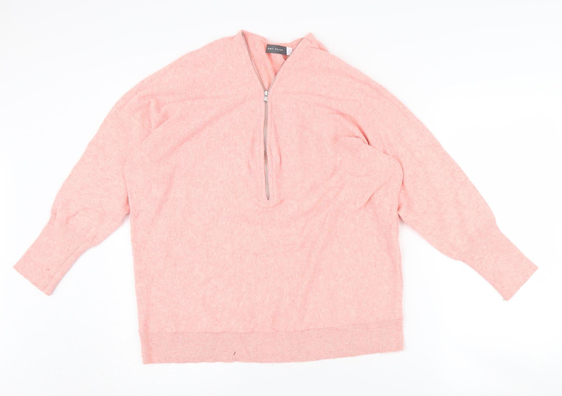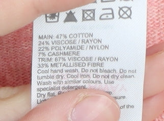 Discover effortless sophistication with the Mint Velvet Women's Pink Half-Zip Jumper. Crafted from a luxurious blend of 47% cotton, 24% viscose, 22% polyamide, and 7% cashmere, this jumper promises both comfort and style. Perfect for casual occasions, its regular fit and long sleeves provide a flattering silhouette for the modern woman. The elegant soft pink colour complements a wide range of outfits, making it a versatile addition to your wardrobe. Featuring a stylish 1/2 zip accent, this jumper is ideal for creating layered looks. Whether you're enjoying a casual day out or dressing for a laid-back occasion, this jumper offers endless styling possibilities. With a hand wash care instruction, it ensures long-lasting quality. This gently used piece remains in excellent condition with minimal signs of wear. Enhance your casual collection with this elegant jumper, perfect for all seasons.