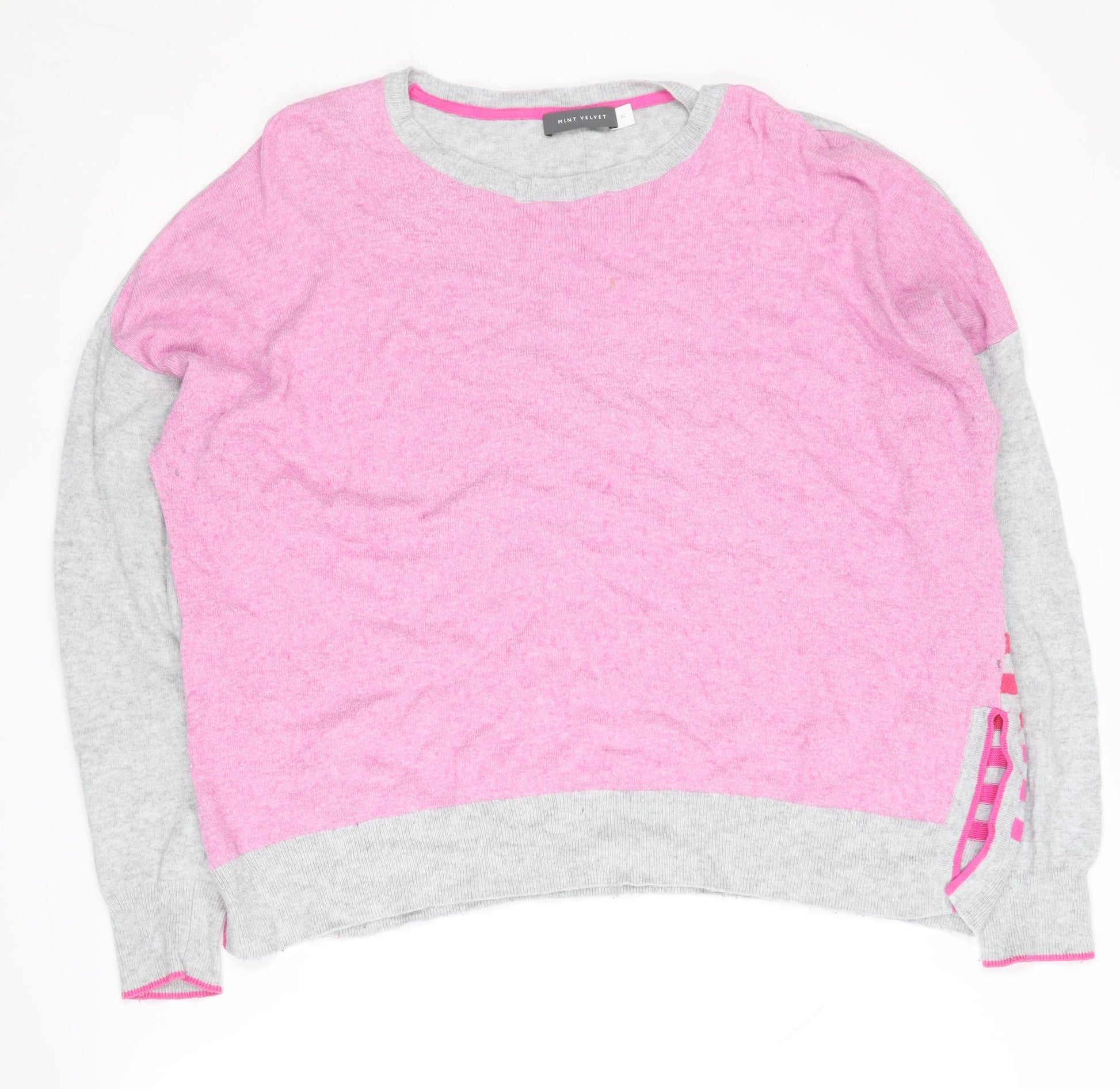 Elevate your wardrobe with this stylish Mint Velvet Women's Pink XL Striped Pullover Jumper. Crafted with a delicate blend of materials, this jumper features 47% cotton, 24% viscose, 22% polyamide, and 7% cashmere, ensuring an incredibly soft and comfortable feel. The striking pink colour paired with classic stripes makes this piece a versatile addition to your casual collection. Designed as a pullover with long sleeves and a crew neckline, it offers a timeless and relaxed look suitable for all seasons. This knit fabric jumper is ideal for everyday wear, and its excellent condition reflects minimal use, having a slightly worn look that's perfect for laid-back outings. Whether you're pairing it with jeans for a casual day out or layering it for added warmth, this jumper provides effortless style. With a hand wash only care label, maintaining its lovely texture and appearance is straightforward. Get ready to enjoy cozy comfort and chic design with this Mint Velvet creation.