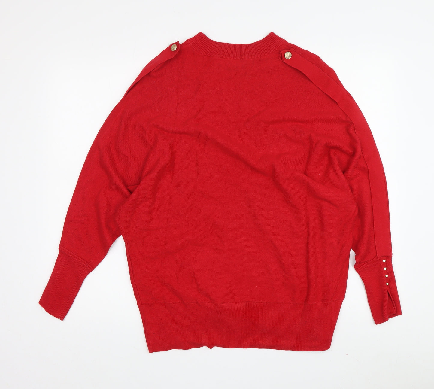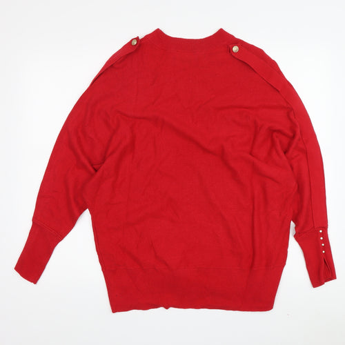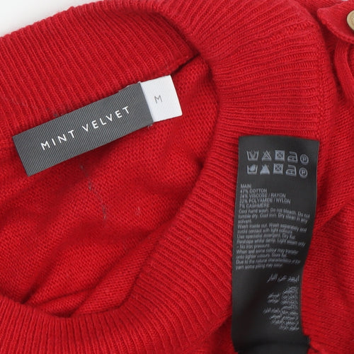 Add a pop of colour to your wardrobe with this chic Mint Velvet Women's Pullover Jumper in vibrant red. Crafted for comfort and style, this jumper is a versatile addition for any casual occasion. Made from a luxurious blend of cotton, viscose, nylon, and cashmere, it offers both softness and a hint of luxury, perfect for autumn and winter seasons. Featuring a classic crew neck and button accents on the shoulders, this tight-knit, regular fit jumper provides a flattering silhouette. Ideal for layering, pair it effortlessly with jeans or a skirt for a stylish ensemble. Whether it's a relaxed day out or a cozy evening in, this jumper is your go-to choice for comfort and elegance.