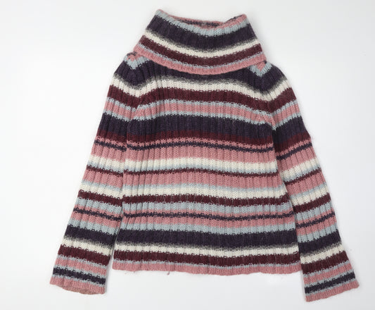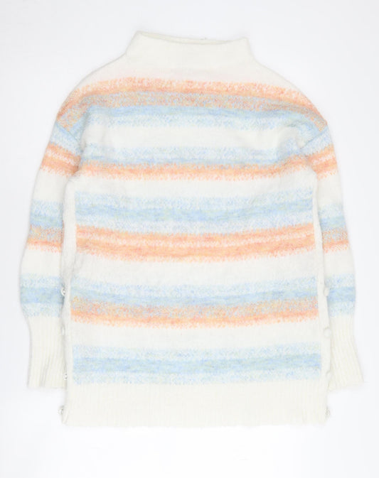 Mint Velvet Women’s Grey Mock Neck Striped Knit Jumper Size M
