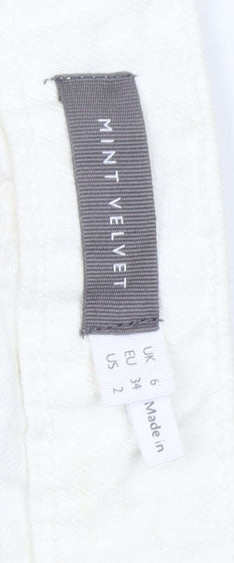 Explore effortless style with this Mint Velvet Women's White Cargo Midi Skirt, perfect for casual outings during spring and summer. Crafted from 100% cotton, this skirt offers comfort and breathability. With a regular size fit of UK 6, its mid-rise design ensures ease and mobility. The chic white colour complements any wardrobe, while the cargo style adds a touch of utilitarian charm. Featuring convenient pockets, it enhances functionality for your daily adventures. This skirt is machine washable, making maintenance a breeze. Although pre-owned, it is in excellent condition with no visible signs of wear, preserving its allure. Jazz up your day with versatility and grace, and pair it with your favourite tops. Perfect for casual occasions, this piece is tailored for the modern woman seeking a fashionable yet practical option. Embrace this timeless addition at an affordable price that guarantees style without compromise.