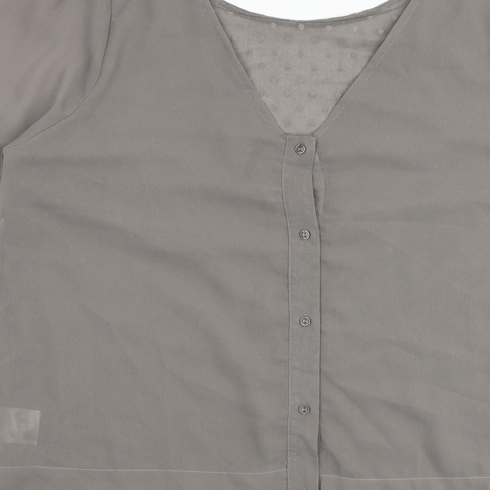 Womens Grey Polyester Basic Blouse Size L V-Neck