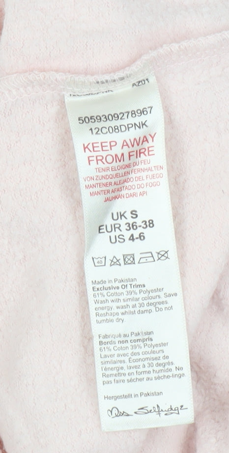 Elevate your casual wardrobe with this charming pink pullover sweatshirt by Miss Selfridge. Ideal for women who appreciate both style and comfort, this sweatshirt is a must-have for all seasons. The soft pink hue adds a touch of femininity, making it perfect for casual outings or lounging at home. Crafted from a blend of 61% cotton and 39% polyester, it offers a comfortable and breathable fit, ensuring you stay cosy and stylish all day long. Designed in a regular fit with long sleeves and a classic crew neckline, this sweatshirt is as versatile as it is chic. The raglan sleeves add a modern touch, making it easy to pair with your favourite jeans or leggings. Whether you're heading out for a casual coffee date or enjoying a relaxed day indoors, this sweatshirt is an excellent choice. It's machine washable for easy care, ensuring that it remains a staple in your wardrobe for years to come. With light wear visible, this piece is in excellent condition and ready to be a part of your daily wear collection. Get ready to embrace effortless style with this lovely pink sweatshirt from Miss Selfridge.