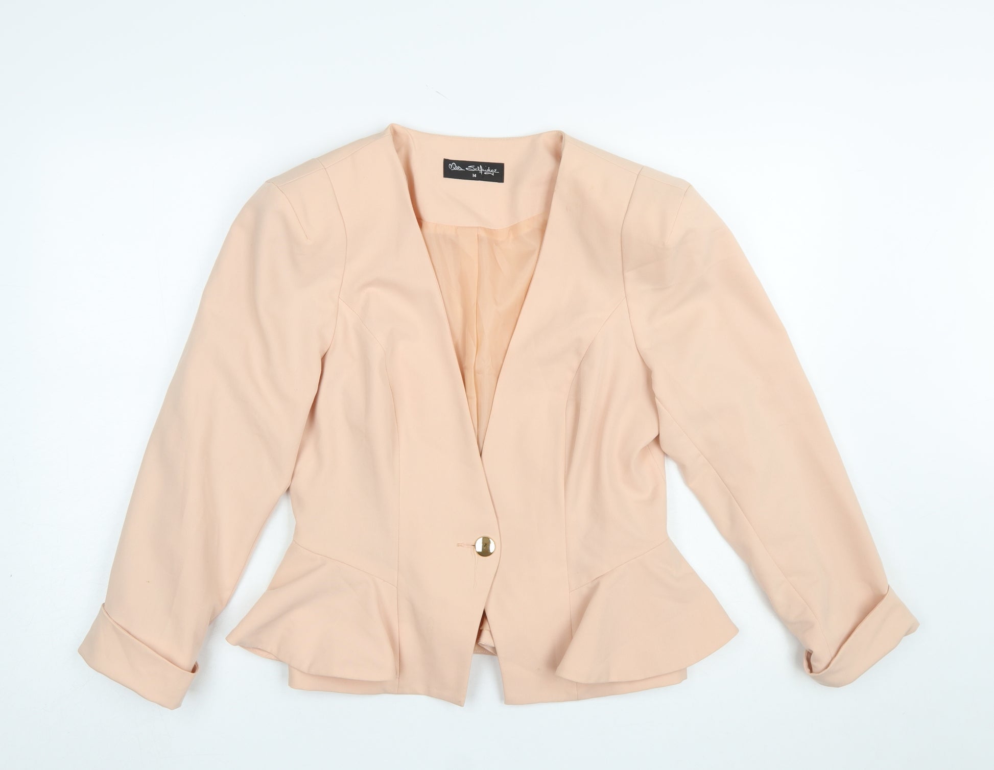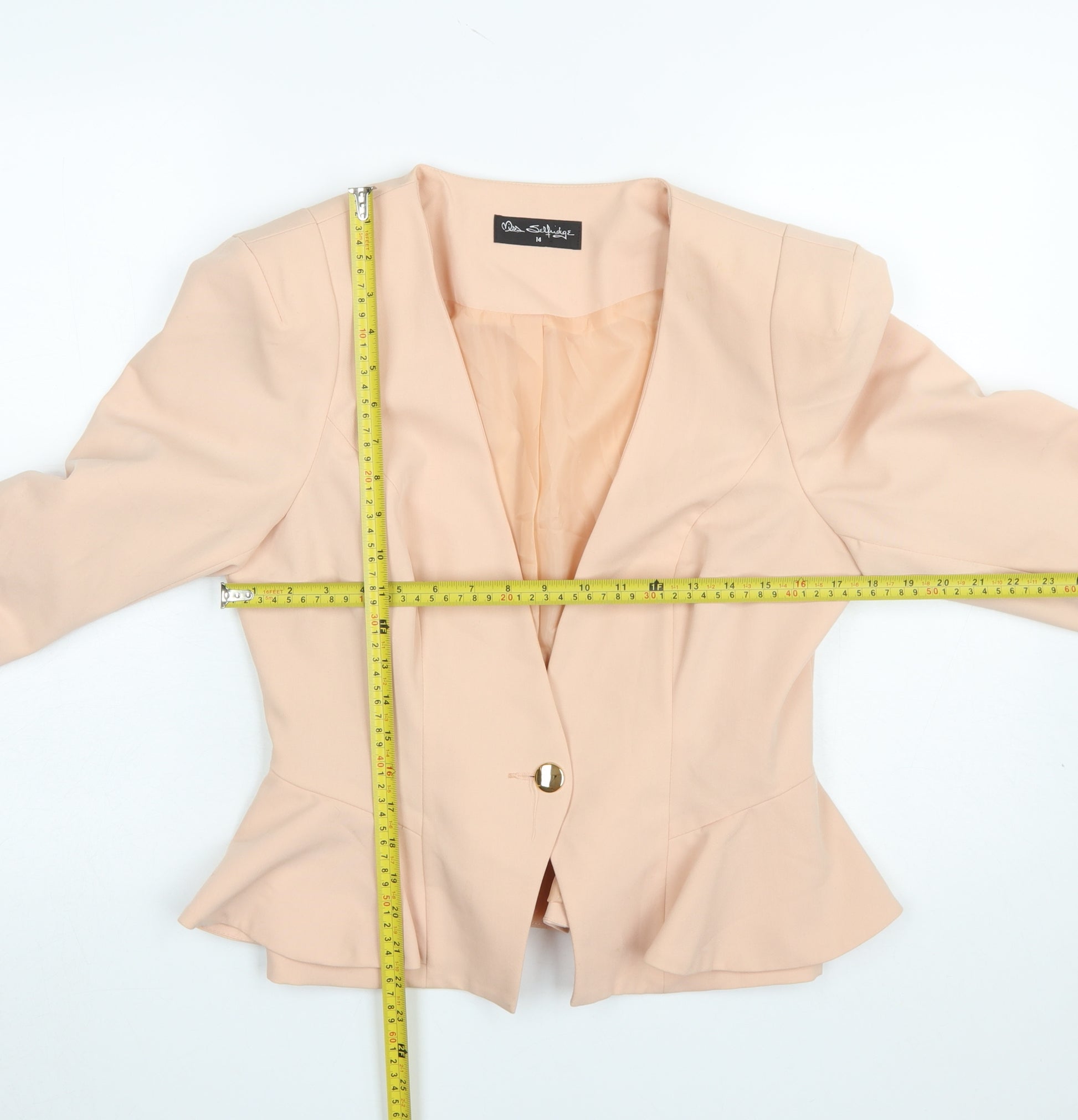Women Beige Peplum Blazer Jacket UK 14 Lined Single Button