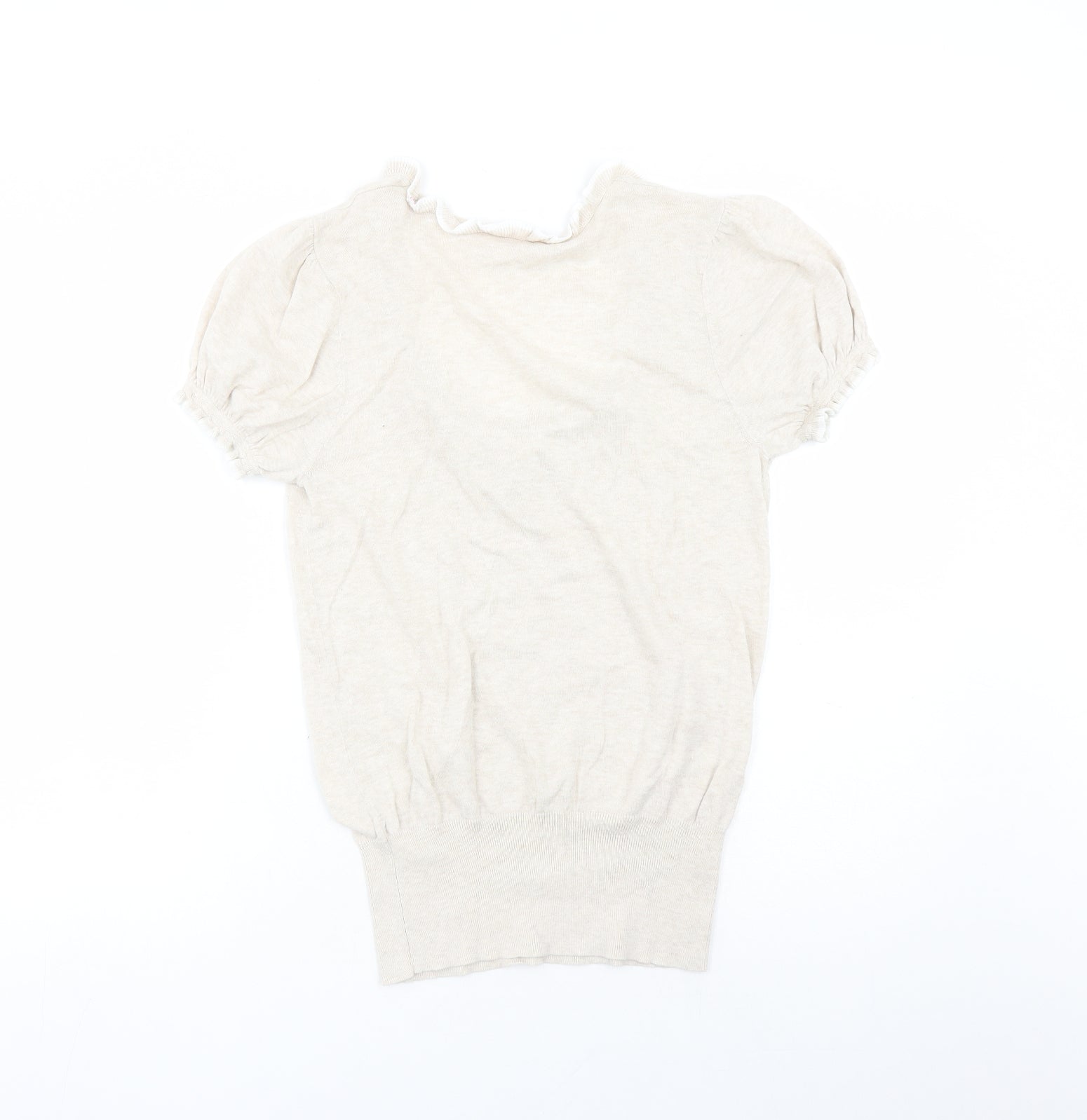 Womens Beige Round Neck Cotton Pullover Jumper Size 14