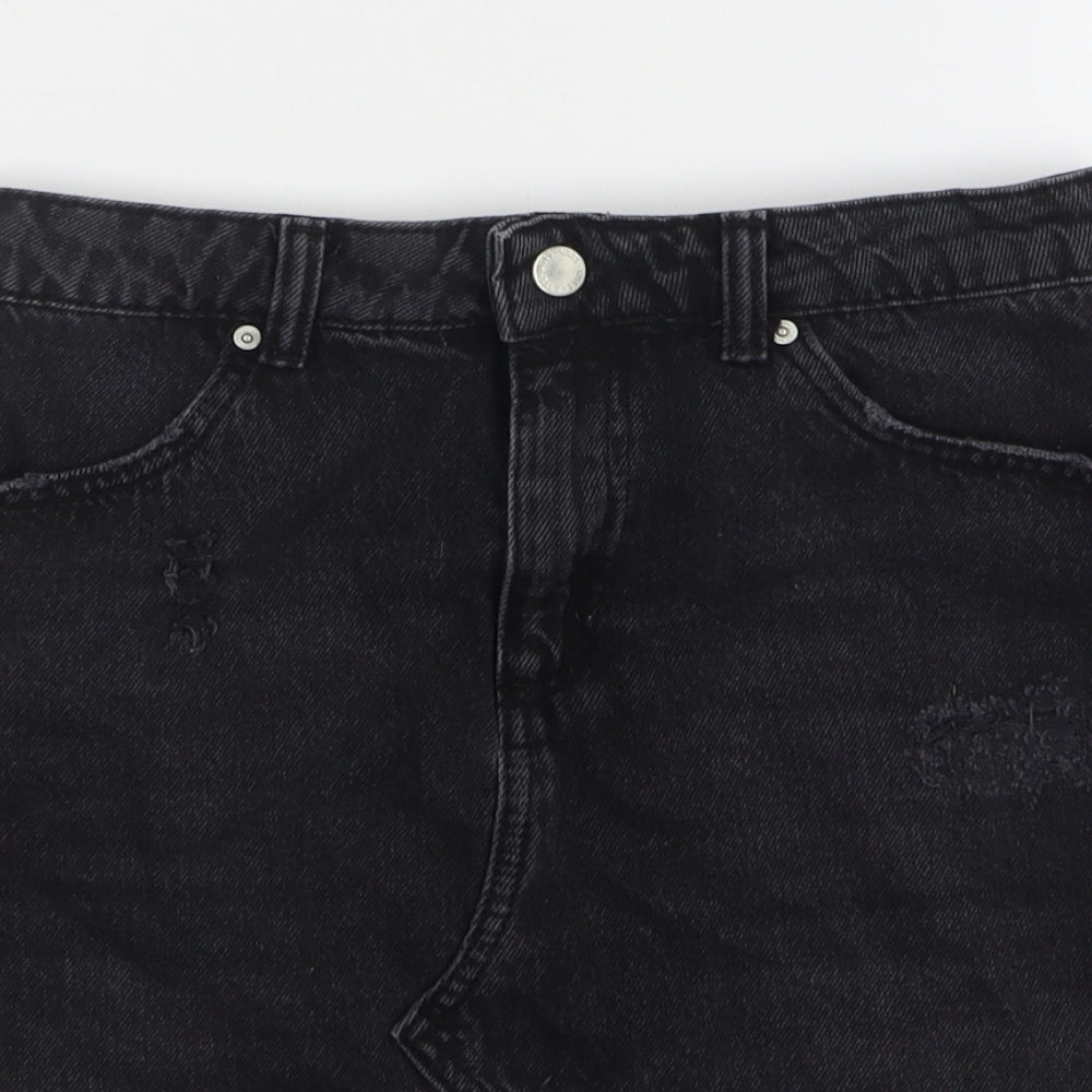 Womens Black Cotton Mini Skirt Size 10 Button - Distressed Hem