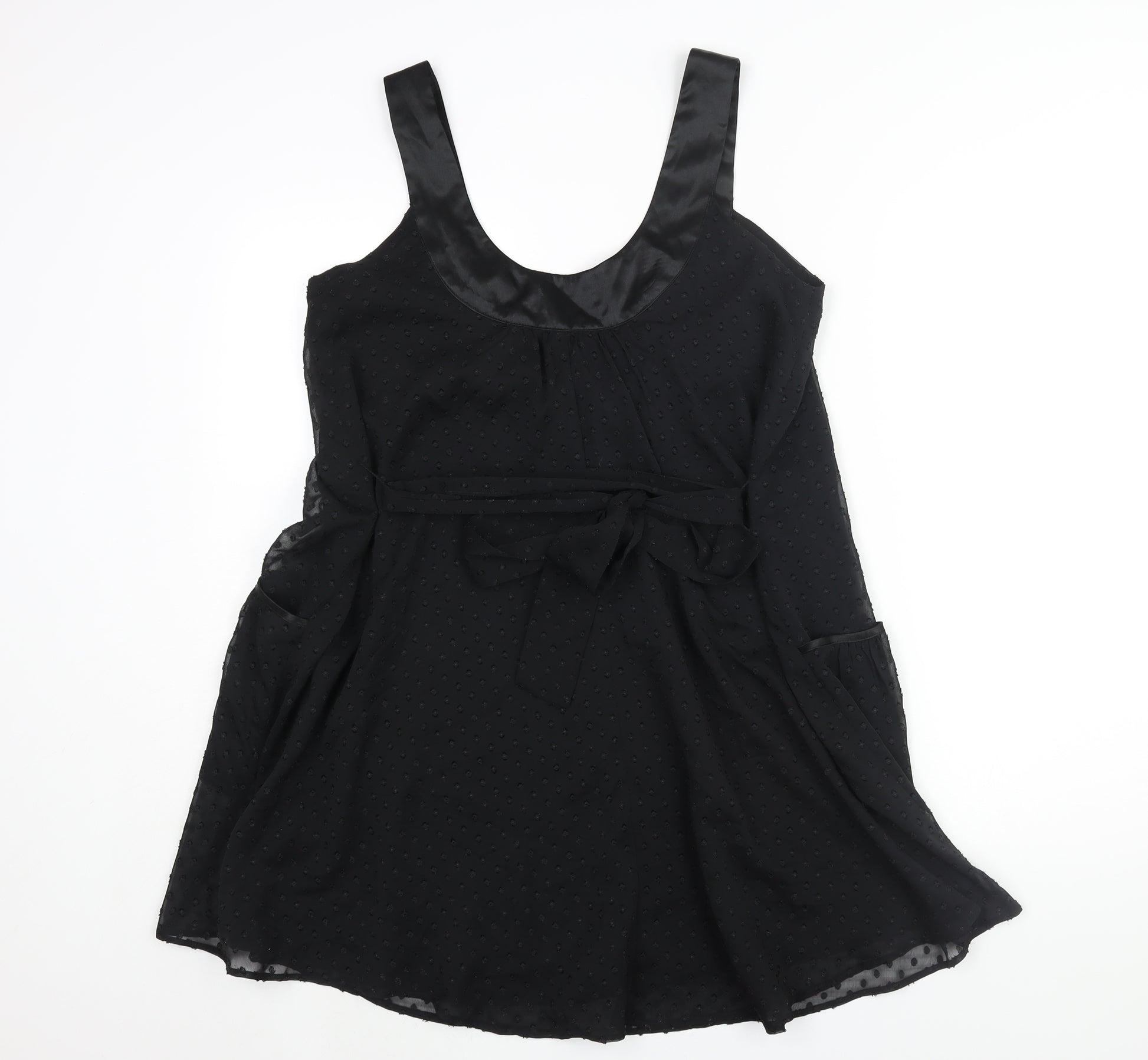 Womens Black Polyester Shift Size 12 Scoop Neck Pullover - Belted Pockets