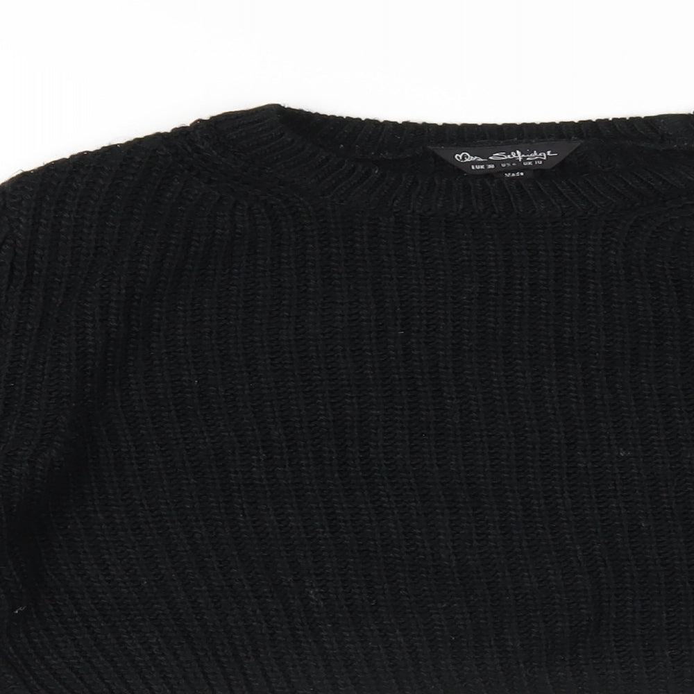 Womens Black Round Neck Acrylic Pullover Jumper Size 10