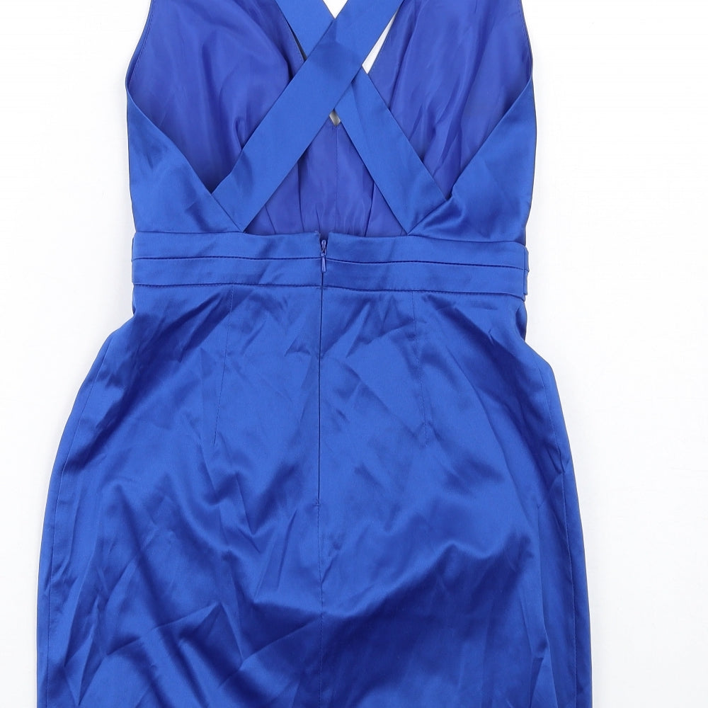 Womens Blue Polyester Mini Size 8 V-Neck Zip