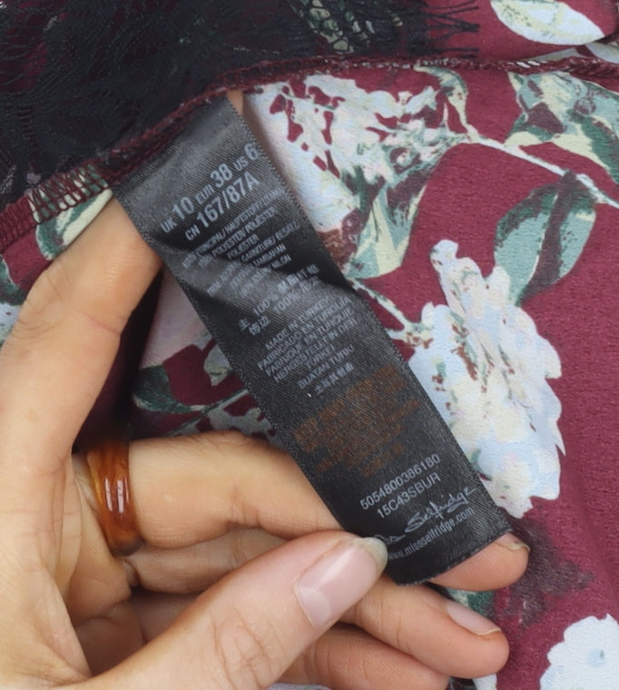 Elevate your wardrobe with this elegant Miss Selfridge blouse, perfect for women who appreciate both style and comfort. Designed in a beautiful multicoloured floral pattern, this sleeveless blouse is ideal for the warmer seasons of spring and summer. Crafted from 100% polyester, the fabric offers a lightweight feel and is machine washable for easy care. The round neck of the blouse adds a touch of sophistication, while the lace accents provide a delicate, feminine look. Whether you're heading out for a casual day or attending a party, this blouse is versatile enough for various occasions. Its regular fit flatters the figure without compromising on comfort. With a concealed button closure at the back, this blouse maintains a seamless look. Add this piece to your collection and enjoy pairing it with jeans or skirts for an effortlessly chic ensemble. Embrace the flattering and vibrant floral theme, and make a statement wherever you go with this delightful Miss Selfridge blouse.