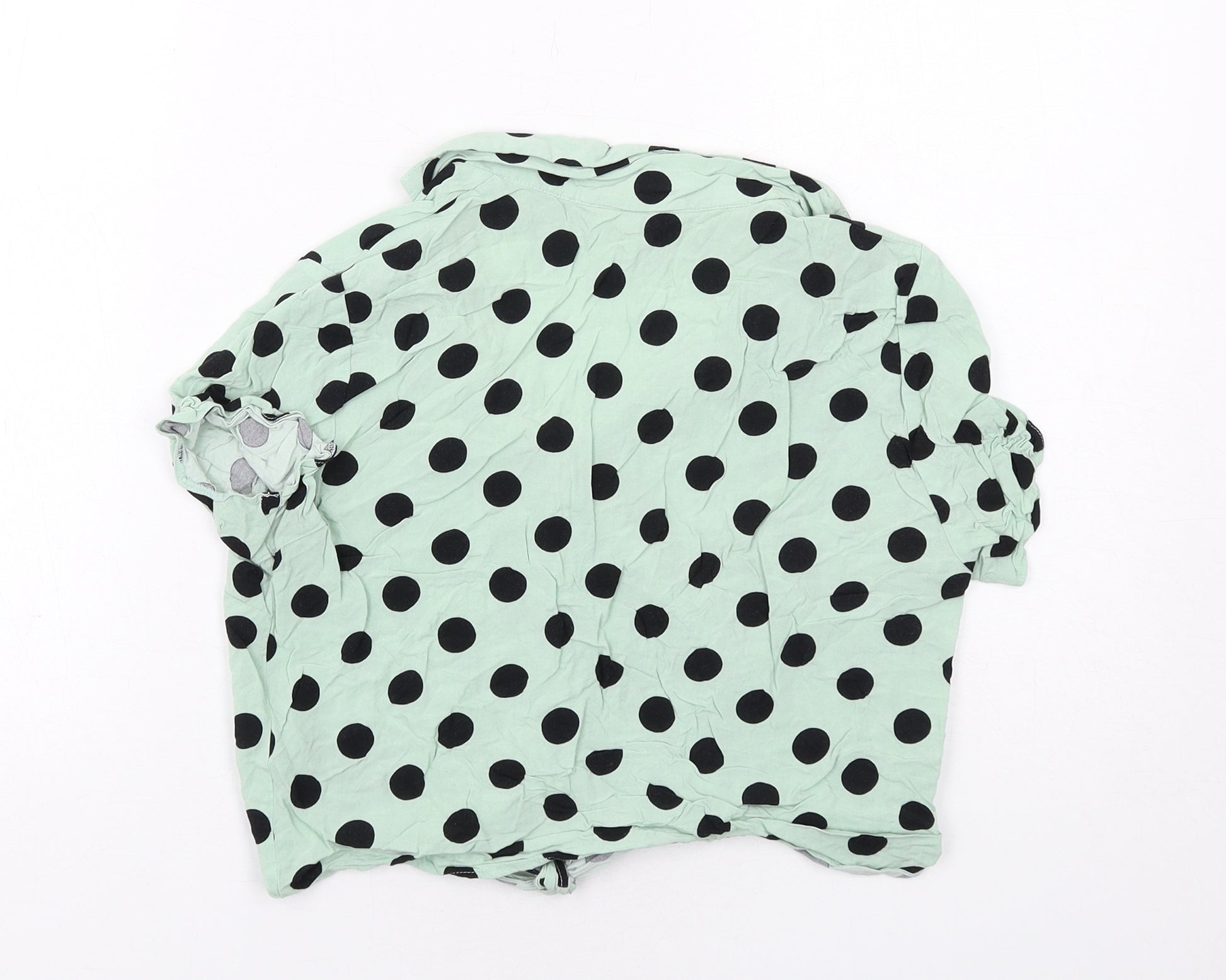 Womens Green Polka Dot Viscose Basic Button-Up Size 10 Collared