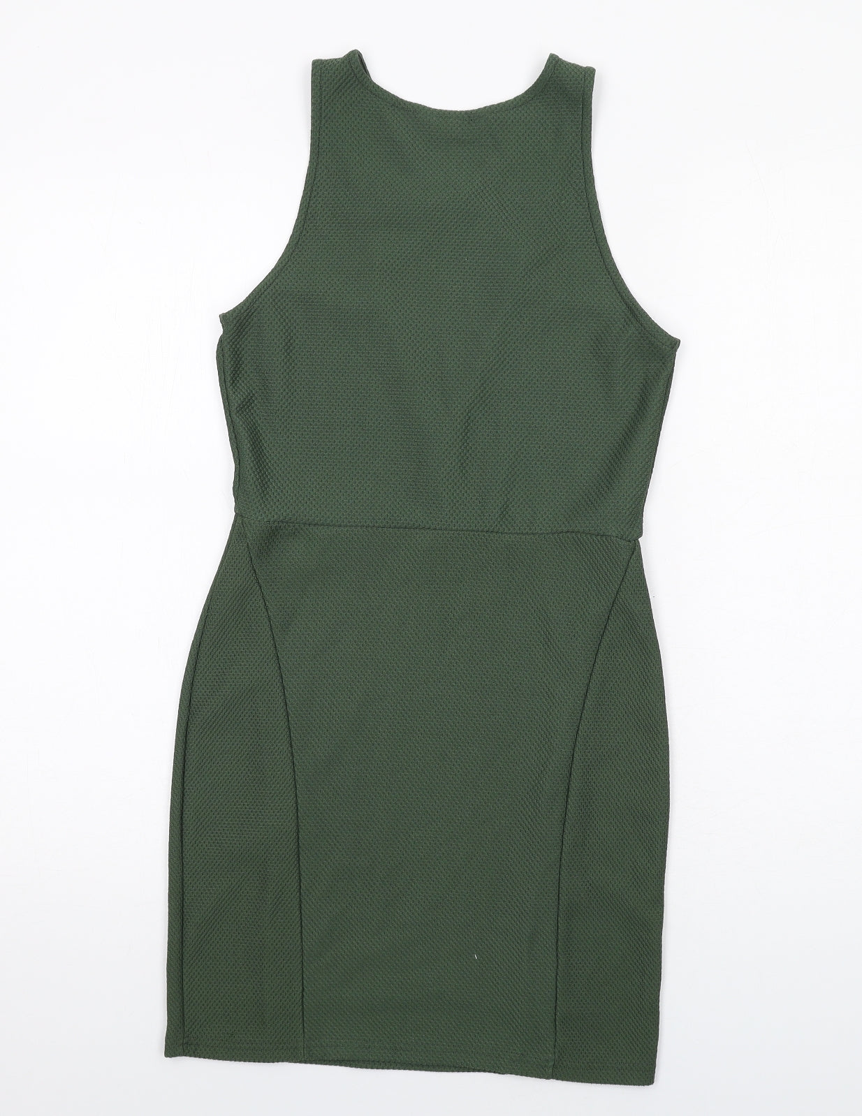 Womens Green Polyester Bodycon Size 10 V-Neck Pullover