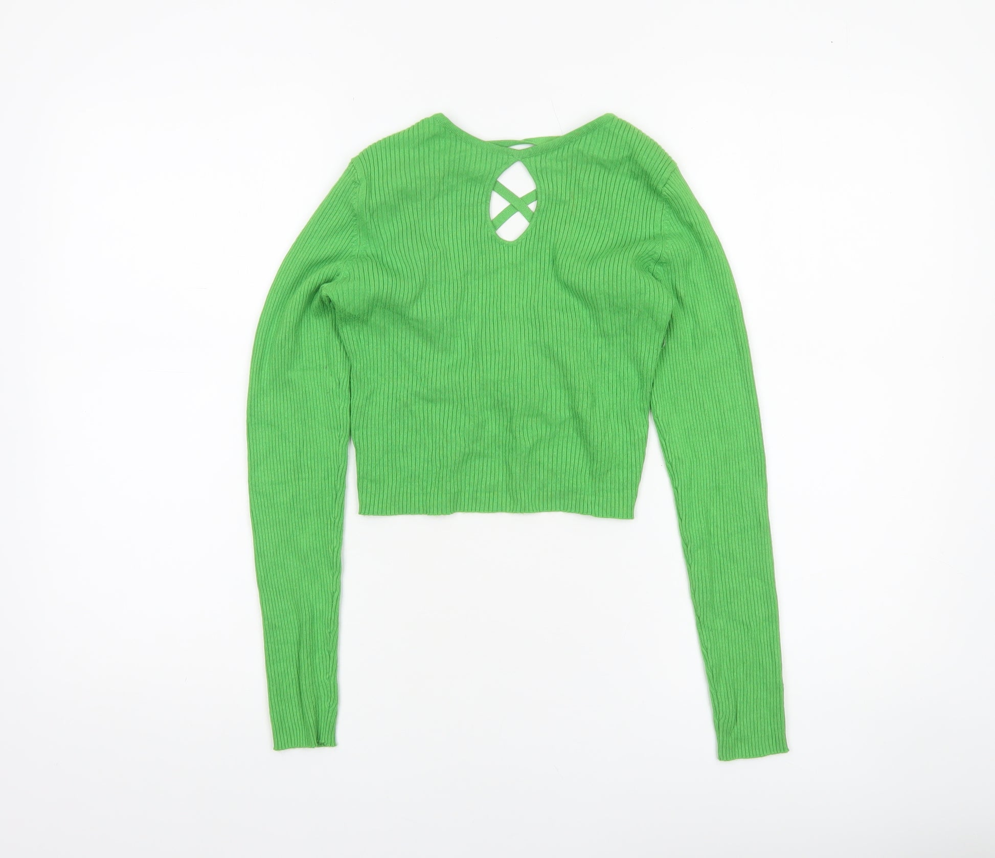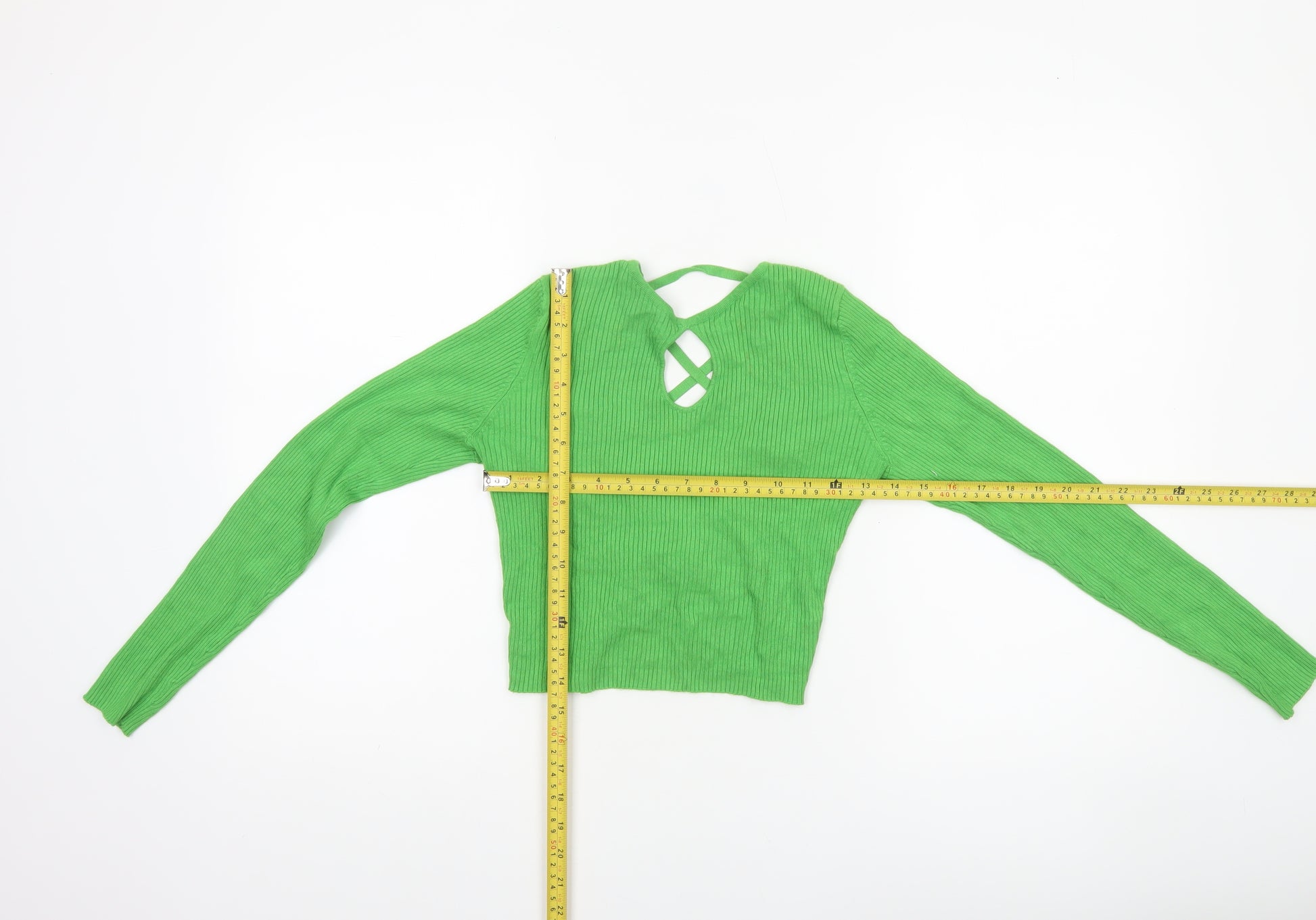 ZARA Women's Green V-Neck Cotton Knit Jumper Size 12