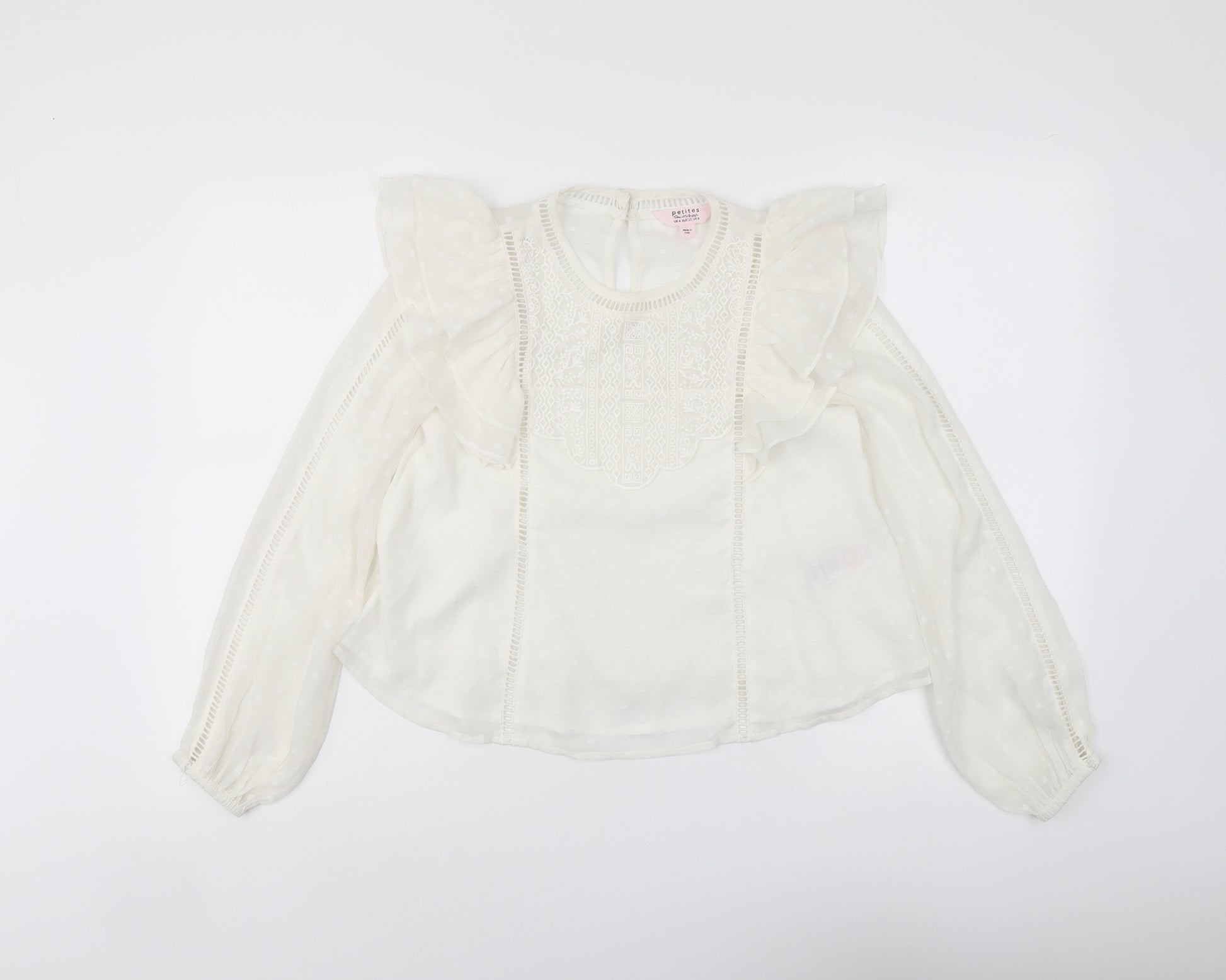 Womens Ivory Polyester Basic Blouse Size 4 Round Neck