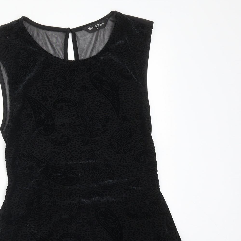 Miss Selfridge Women's Black Size 8 Ribbed Long Sleeve Slim Fit Top