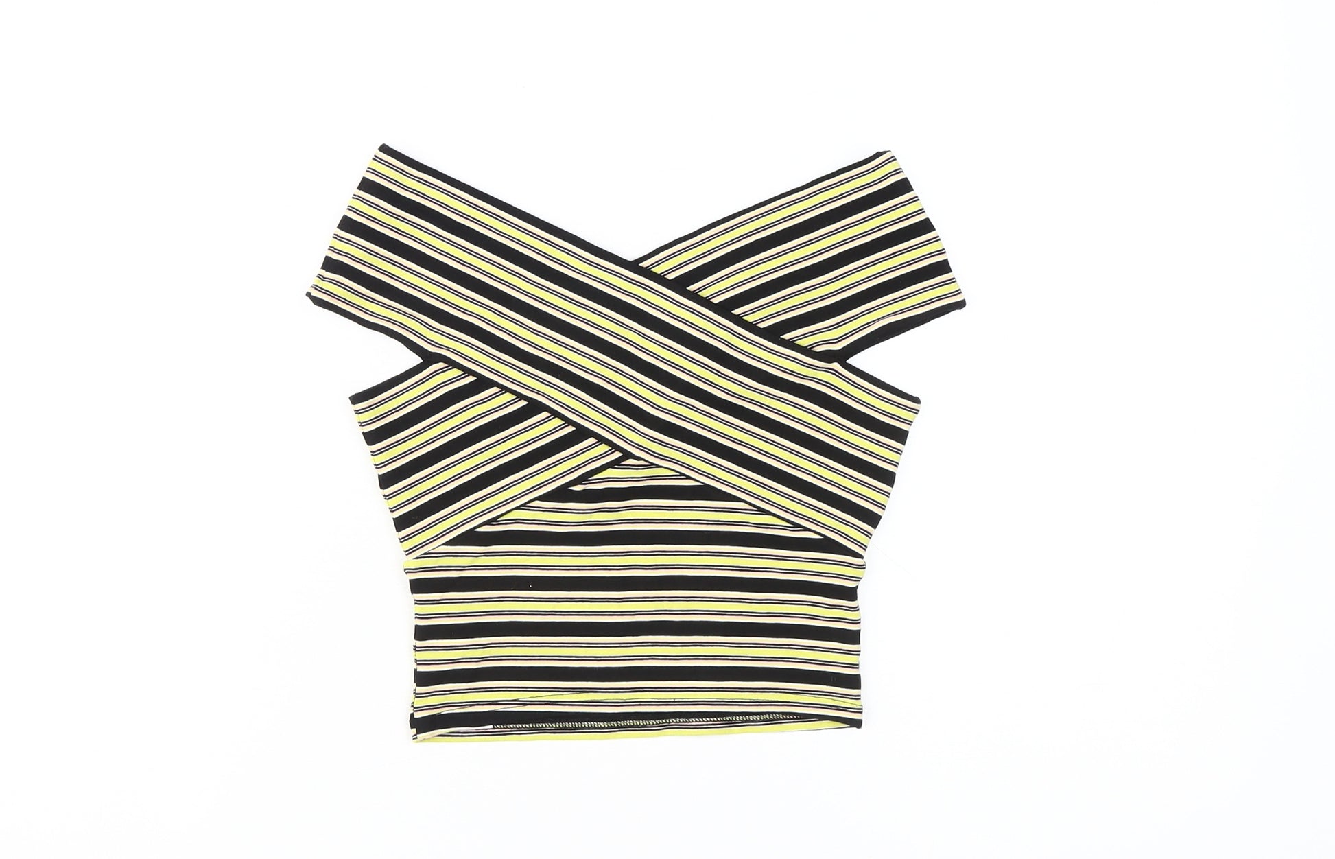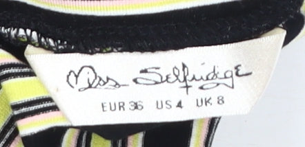 Step up your fashion game with this Miss Selfridge cropped top designed for the modern woman who appreciates style. Perfect for those sunny summer days, this multi-coloured striped top comes in a UK size 8. Its off-the-shoulder neckline and slim fit design exude elegance and flair, making it an ideal choice for casual outings. Made from 98% viscose and 2% elastane, the jersey fabric ensures a comfortable and stretchy fit that you'll love to wear. With a casual occasion focus, this piece doesn't compromise on elegance and sophistication. Despite being pre-loved, it remains in excellent condition with no visible defects or signs of wear. This vibrant and fun top, with its captivating multicoloured stripe pattern, will easily become a staple in your wardrobe, pairing well with skirts, shorts, or your favourite pair of jeans. Freshen up your look today with this chic Miss Selfridge top and embrace summer in style.