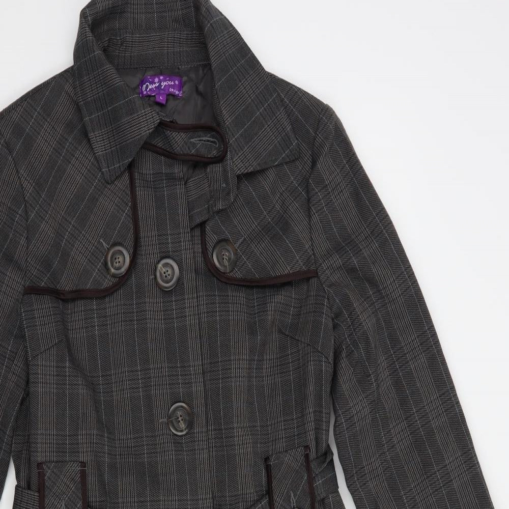 Womens Grey Plaid Trench Coat Coat Size L Button