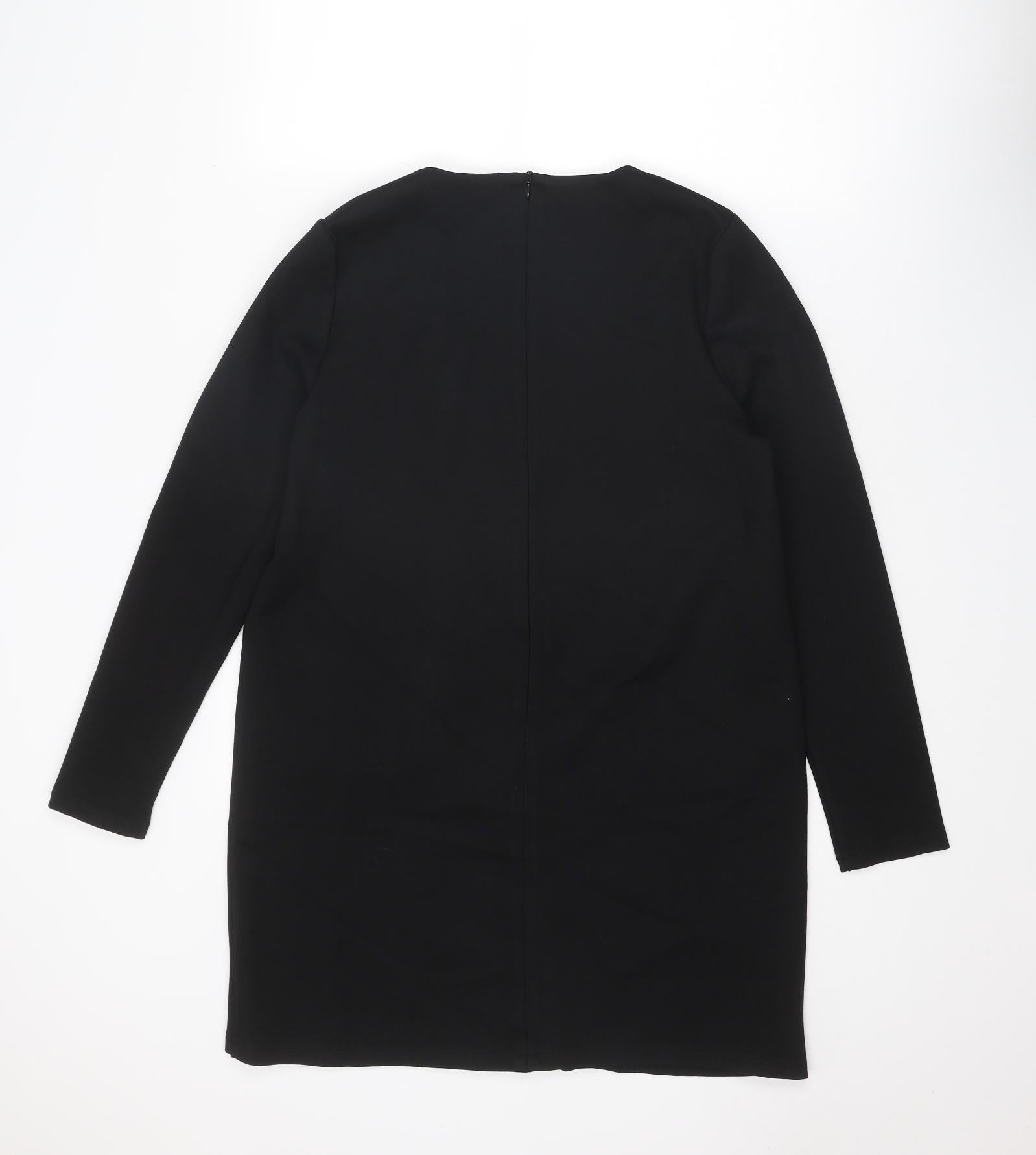 Marks and Spencer Womens Black Geometric Polyester Trapeze & Swing Size 12 Round Neck Zip