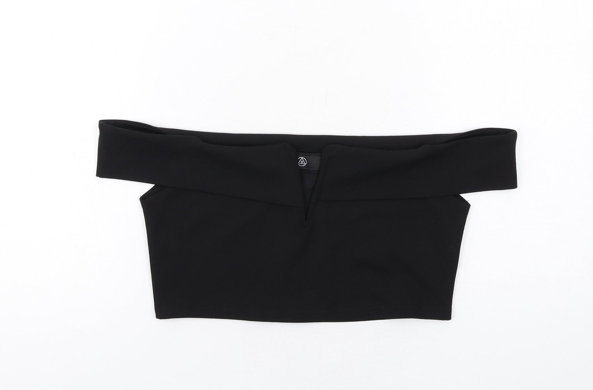 Womens Black Polyester Cropped Blouse Size 10 Off the Shoulder