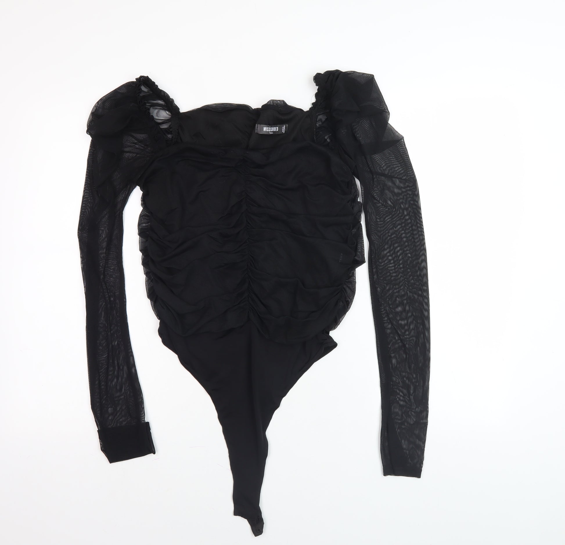Women's Black Tall Bodysuit, Size 14, Ruched