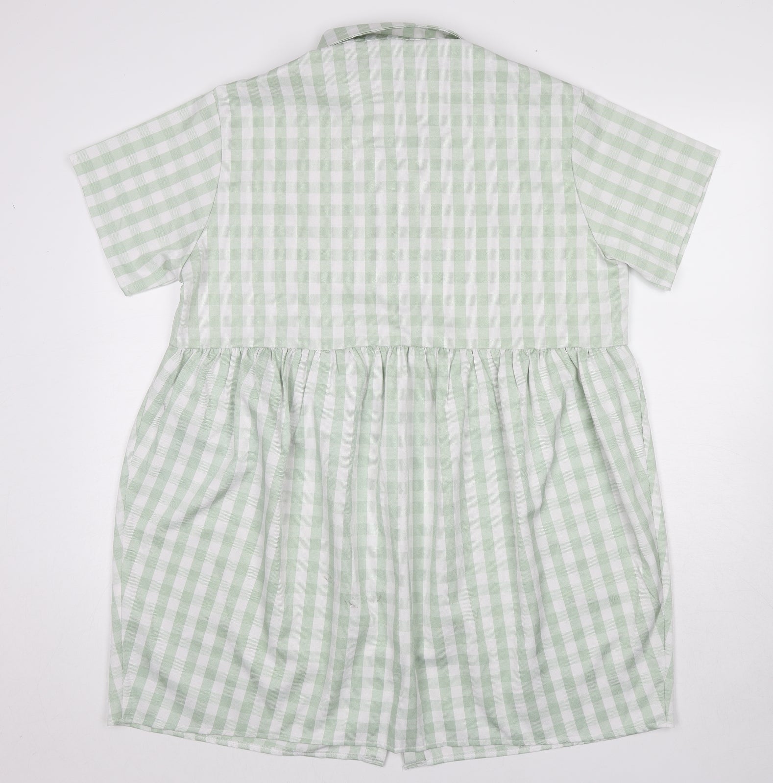 Womens Green Check Polyester Shirt Dress Size 12 Collared Button