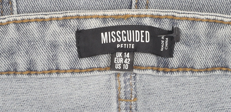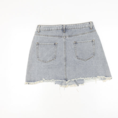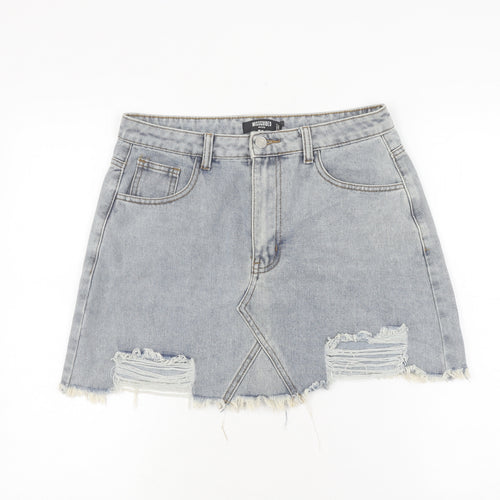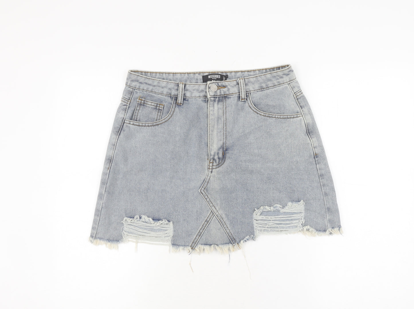This Missguided petite denim skirt is a stylish choice for those who love a modern, edgy look. Made from a durable cotton and polyester blend, this grey short skirt features a classic five-pocket design and is enhanced by chic distressed accents and a frayed hem. The mid-rise waist ensures comfort and the fitted mini style adds a trendy touch to your wardrobe. Perfect for casual outings or parties, it pairs well with a simple tee or an elegant blouse. Its machine washable fabric makes it an easy-care piece that you'll reach for time and again throughout the spring and summer months. Despite its excellent preloved condition, this skirt holds no visible defects and exemplifies a casual grunge theme that's ideal for the fashion-forward woman.