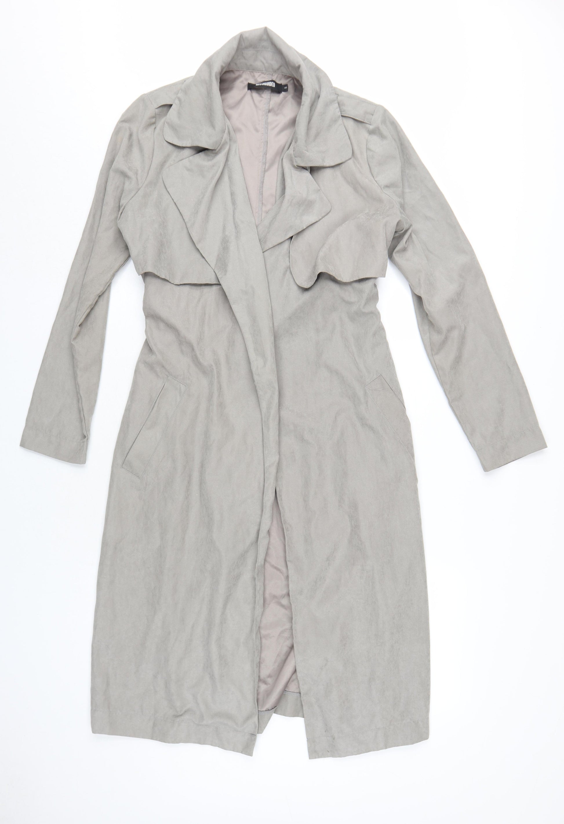 Elevate your outerwear collection with this Missguided Women's Grey Long Trench Coat, perfect for embracing both style and comfort. Crafted from lightweight polyester, this coat is ideal for transitional seasons like spring and autumn. Its sleek grey hue adds a touch of sophistication, making it versatile for various outfits. Designed with a classic belted closure, it accentuates your waist while offering practical comfort. With long sleeves and a regular fit, this trench coat provides adequate coverage for those breezy days. Whether you're heading out for a casual day or need an effortless layer for travel, this coat emerges as a chic choice. Machine washable, maintaining this coat is as efficient as its style. Its excellent condition ensures no visible signs of wear. Add this understated yet timeless piece to your wardrobe to enhance your seasonal ensemble with elegance and ease.