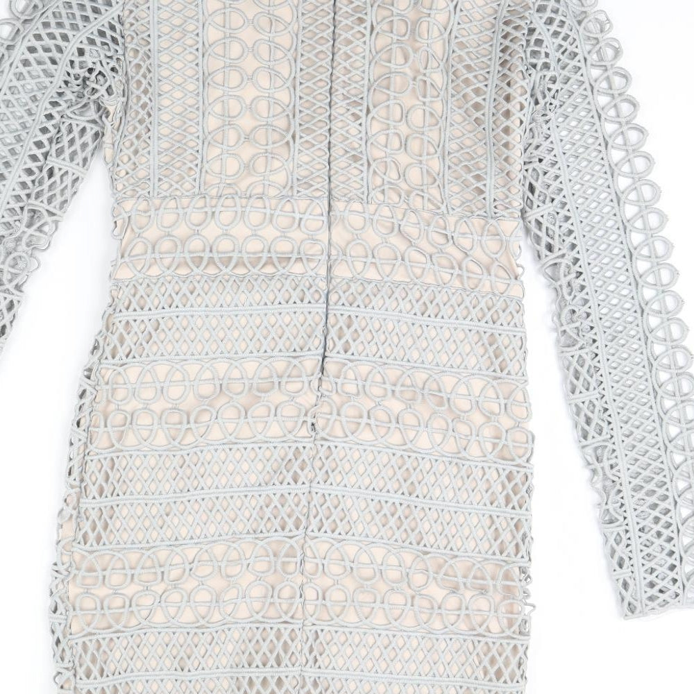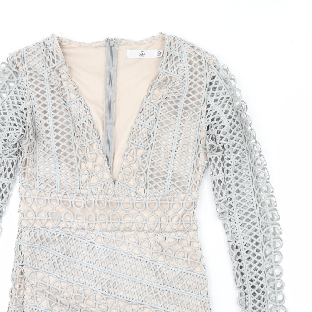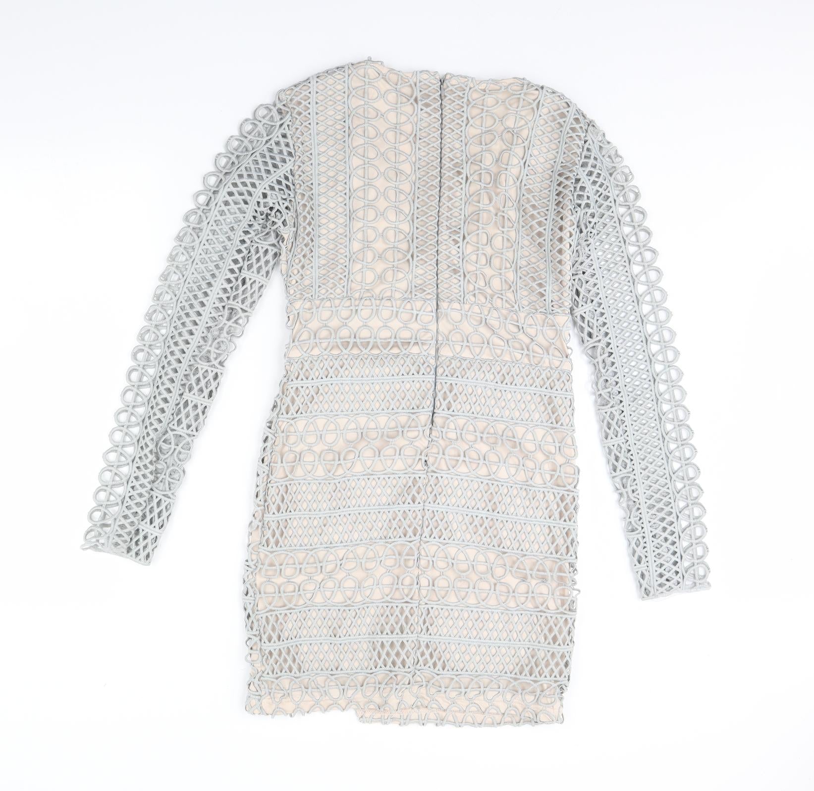 Missguided Womens White Geometric Nylon Bodycon Size 10 Square Neck Zip