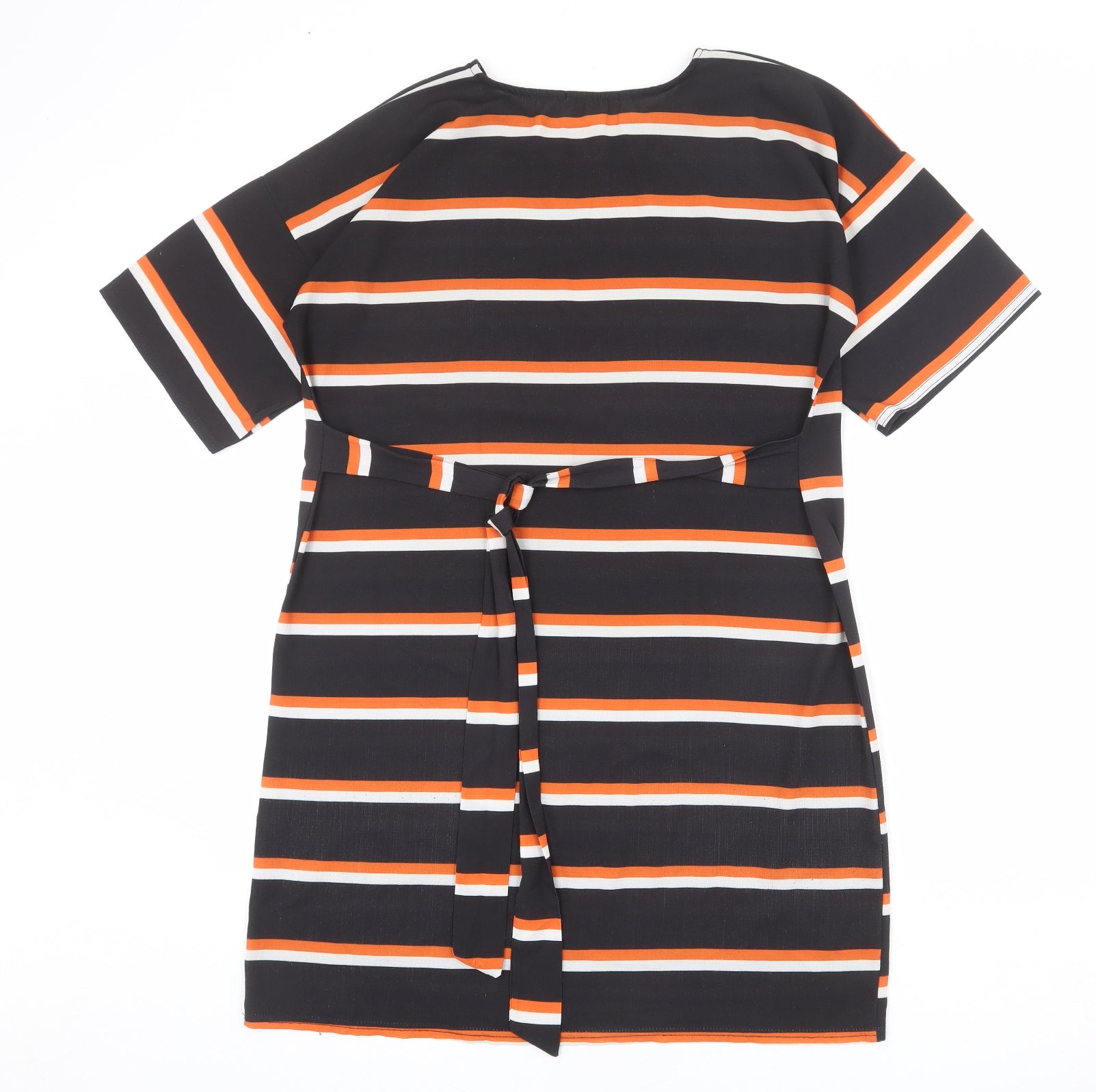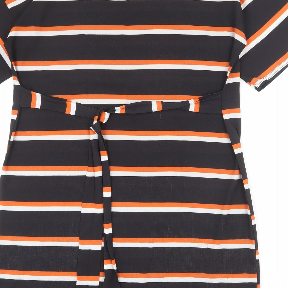 Womens Multicoloured Striped Polyester T-Shirt Dress Size 10 Round Neck Pullover