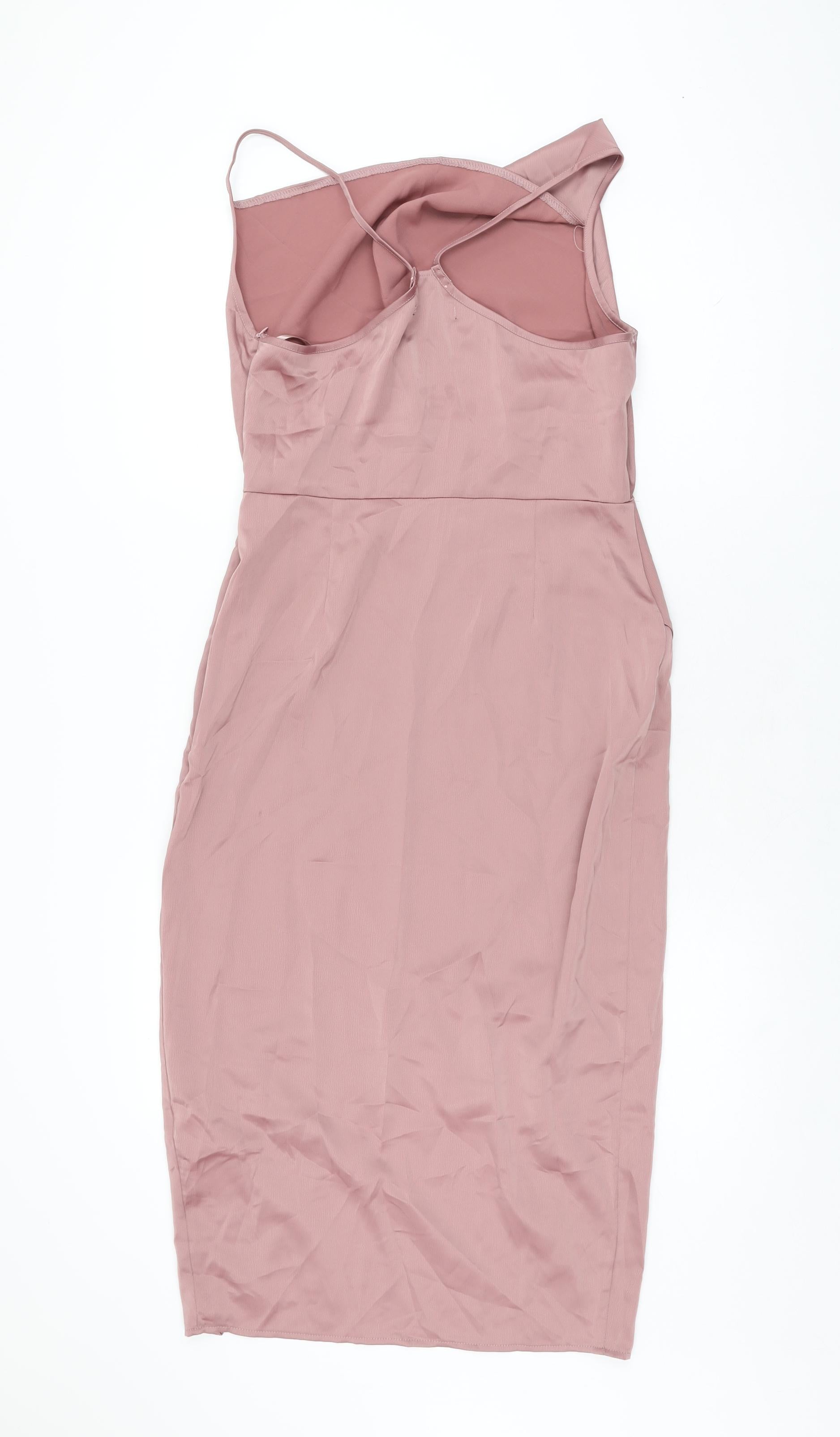 Womens Pink Polyester Bodycon Size 10 Cowl Neck Zip