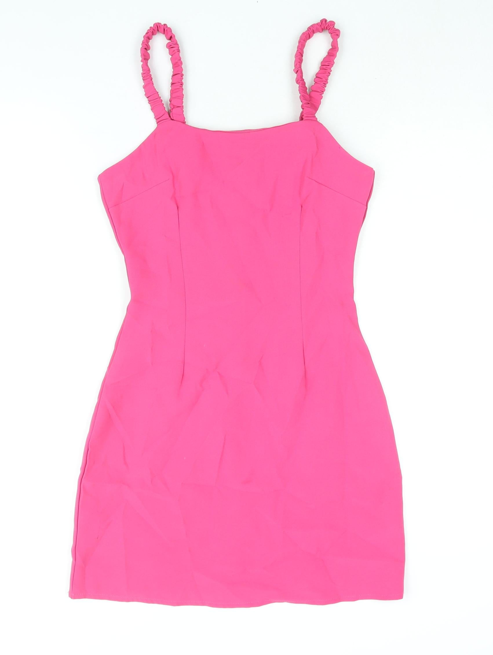 Womens Pink Polyester Bodycon Size 6 Square Neck Zip