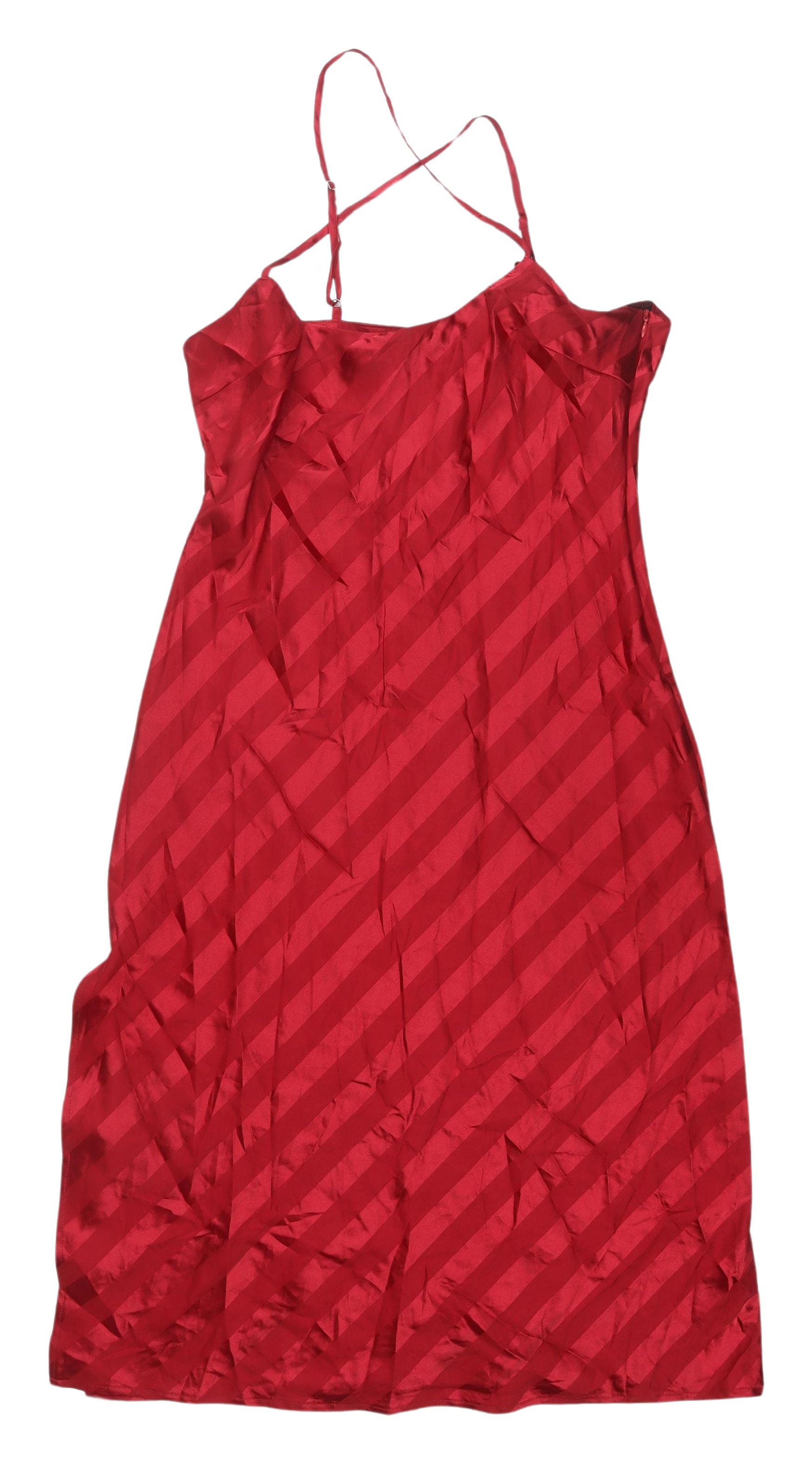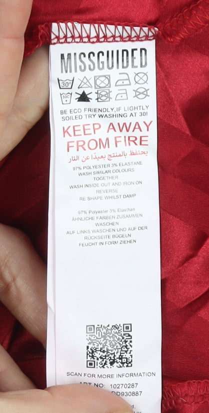Elevate your evening wardrobe with this striking red slip dress from Missguided. Expertly crafted for a form-flattering silhouette, this dress promises to turn heads at any event. Its timeless striped pattern and vibrant colour make it ideal for parties and cocktail gatherings, especially in the warmer months. The sleeveless, strappy design offers a breezy and modern look, while the square neckline adds elegance. Made with a comfortable blend of polyester and elastane, this lightweight woven dress ensures both style and ease of movement. Adjustable straps allow for a personalized fit, enhancing comfort and confidence. Although the dress appears slightly creased, it remains in excellent pre-owned condition, ready to impress at your next occasion. Make a statement with this fabulous piece, adding a touch of glamour to your collection. Don't miss the chance to own a versatile essential that seamlessly transitions from casual outings to more formal affairs effortlessly.