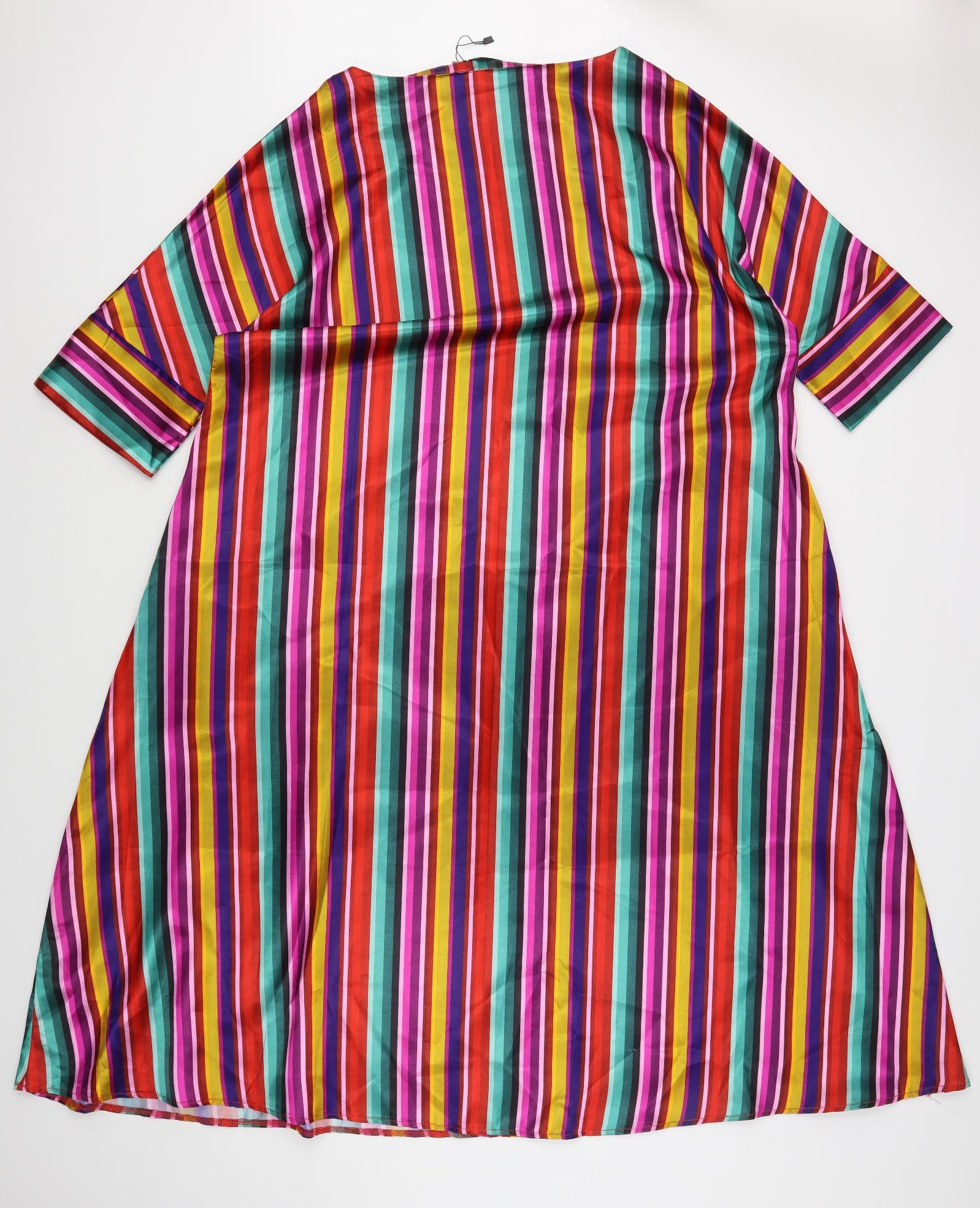 Womens Multicoloured Striped Polyester A-Line Size 4XL Round Neck