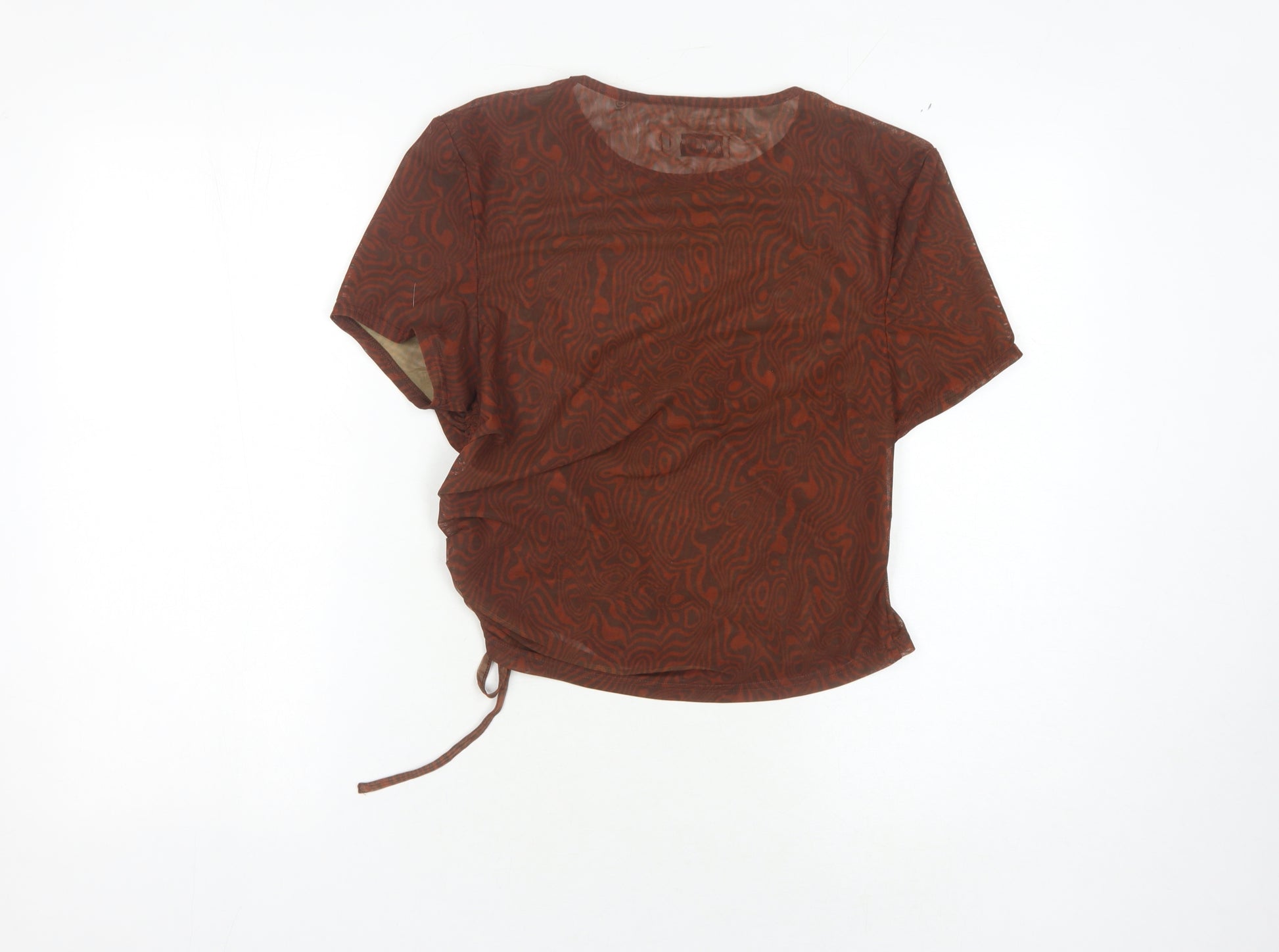 Discover the elegance and versatility of this Mistress Rocks Women's Top in a rich brown hue. Perfect for casual outings or adding a stylish touch to any ensemble, this top boasts a simple yet chic design. Featuring a comfortable regular fit and crafted to suit modern fashion needs, it is designed for everyday wear. Its short sleeves and round neck provide classic appeal while maintaining a fashionable edge. The top's neat finish and quality construction promise both style and durability. Though lacking original tags, its pristine condition ensures you a top that looks as good as new. Ideal for women who appreciate effortless style and comfort, this versatile piece can be paired with your favourite jeans or a sleek skirt to create a look that's perfect for any occasion.