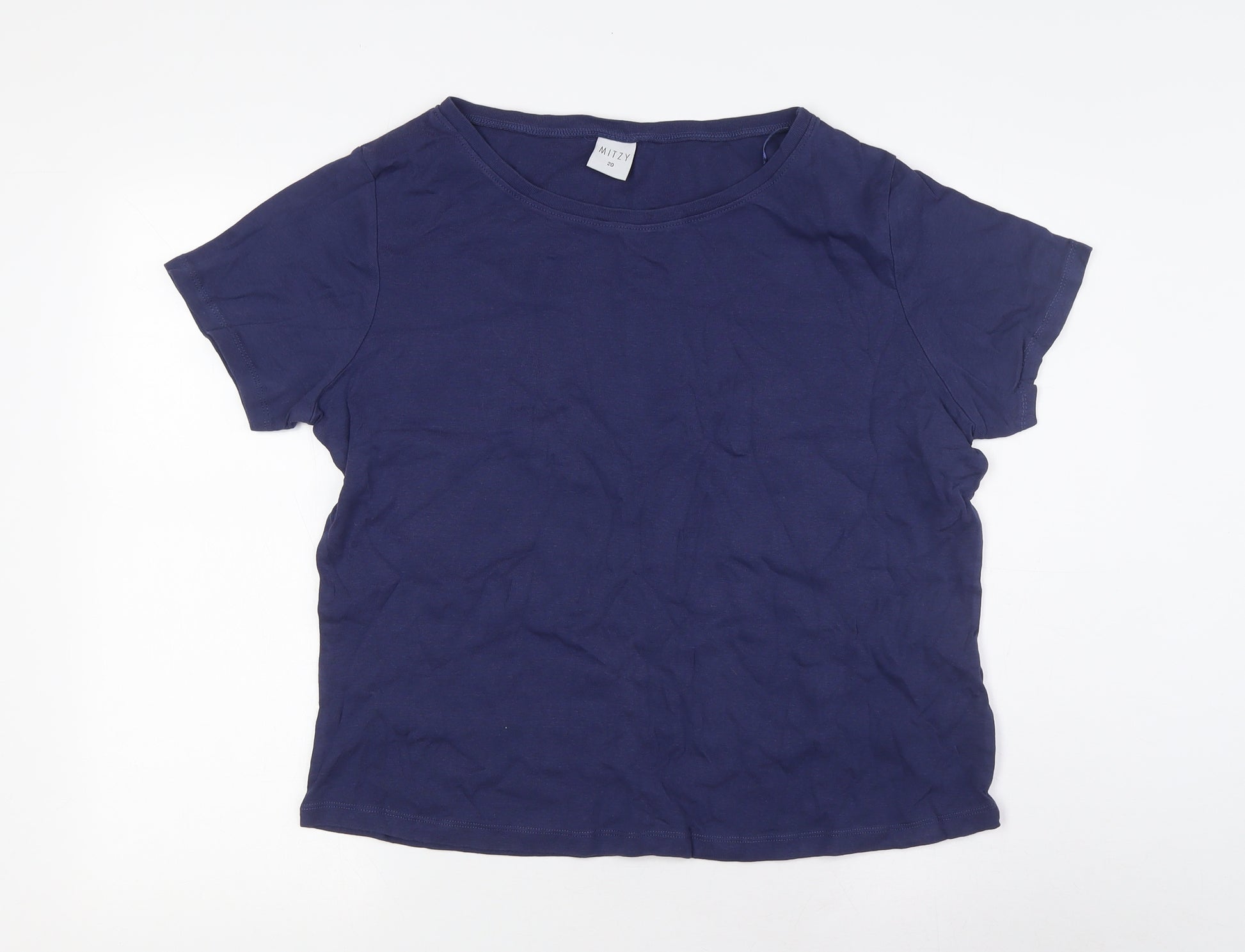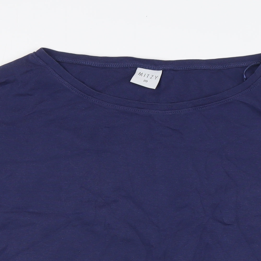 Womens Blue 100% Cotton Basic T-Shirt Size 20 Boat Neck