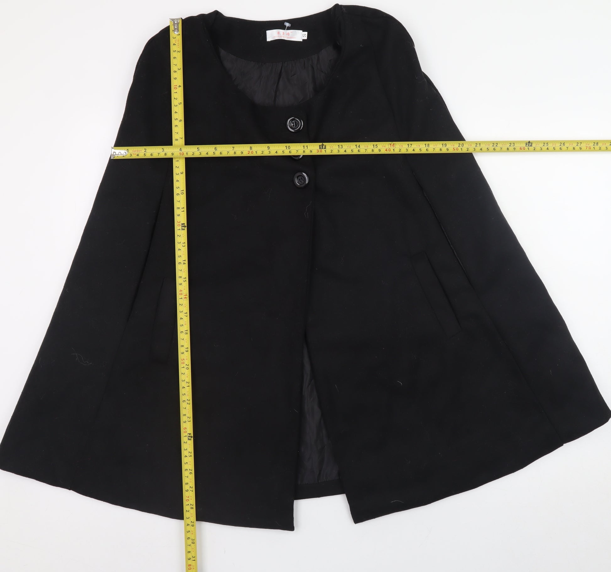 Elevate your wardrobe with this elegant women's black cape coat from mlduoshifashion, designed to bring a touch of timeless sophistication to your outerwear collection. Crafted in a sleek, mid-length silhouette, this cape offers versatility and comfort while maintaining an air of classic style. Made from 100% polyester twill, the outer shell has a smooth yet durable texture, ideal for cooler months, while the matching polyester lining enhances comfort and warmth. The cape features a simple yet refined three-button closure at the front, allowing for ease of wear while maintaining a tailored look. Discreet front pockets add a practical touch, perfect for small essentials or keeping your hands warm on brisk days. The sleeveless design creates elegant flowing lines, allowing it to drape naturally over your shoulders for a flattering fit that suits various body shapes. Perfect for both casual and formal occasions, this mid-length cape can easily pair with tailored trousers, dresses, or slim-fit jeans for a polished look. Its minimalist design and solid black colour lend a classic, versatile appeal suitable for autumn and winter wear. Whether heading to a business meeting, attending a social event, or simply stepping out on a cooler evening, this chic overcoat-style cape promises to add refined charm to any outfit. In very good pre-owned condition, this garment shows only light signs of wear with minor lint present, ensuring it retains its excellent visual appeal. Ideal for layering, it strikes a perfect balance between warmth and style. Make this beautiful mlduoshifashion cape coat a standout piece in your collection and enjoy the combination of contemporary design and timeless fashion that it delivers.