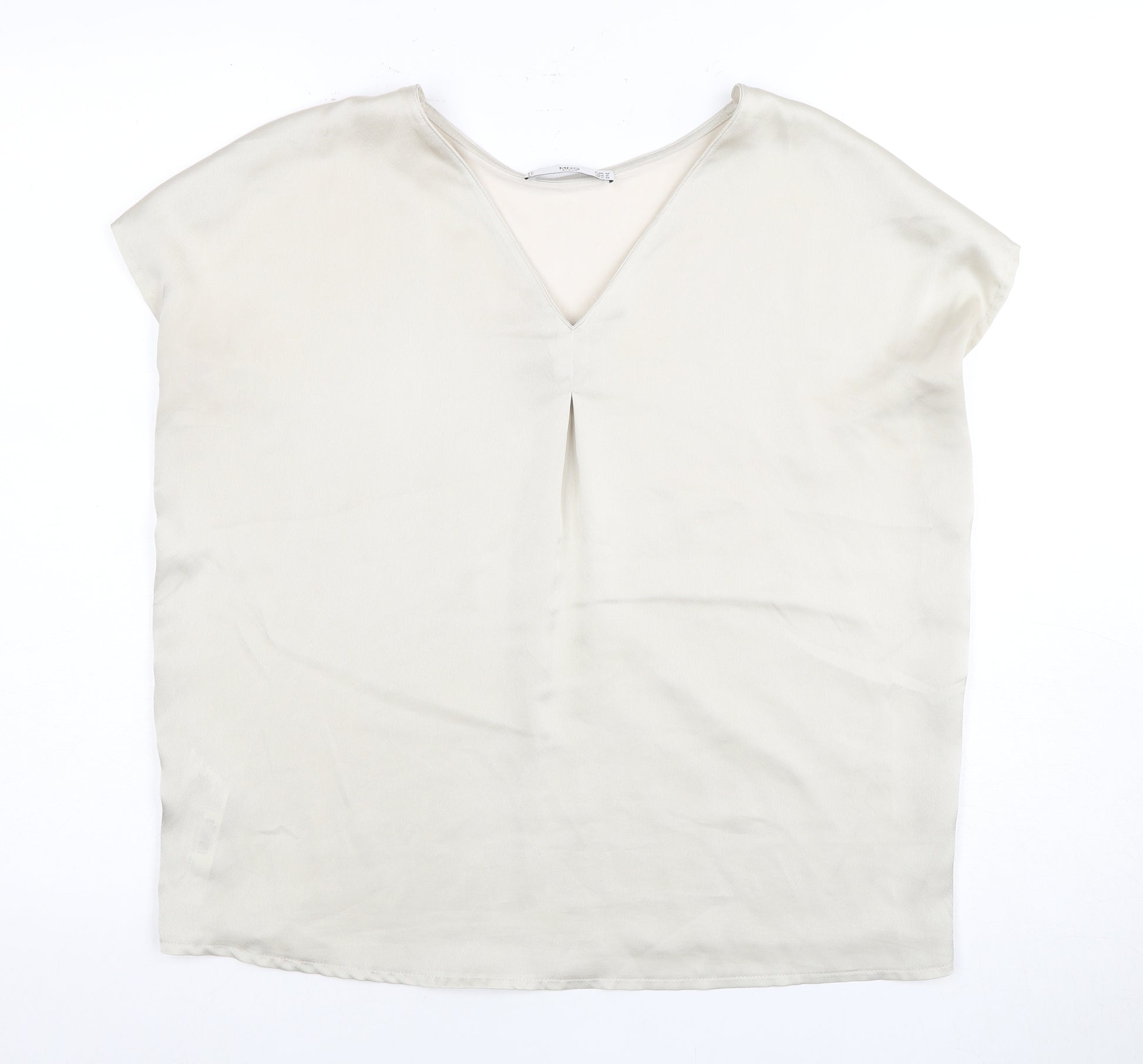 Explore effortless elegance with this MNG Basics Women's Blouse, tailored in a serene beige tone that effortlessly complements various wardrobe styles. Crafted for the modern woman, this blouse boasts a regular fit in size M, making it ideal for daily wear. The fabric offers a delightful blend of polyester and viscose, ensuring a lightweight and comfortable experience. This casual piece features a versatile V-Neck that adds a hint of sophistication, making it perfect for both relaxed and semi-formal settings. Its solid pattern and basic style make it a timeless piece, easily adaptable to different fashion preferences. Ideal for spring and summer wear, this blouse is perfect for casual occasions, offering ease and versatility in styling. Pair it with jeans for a day out or a skirt for a more polished look. With its simplicity and neutral colour, it stands out as an essential piece in your wardrobe, promising to enhance your collection with understated charm. Priced attractively, this MNG Basics blouse invites you to embrace effortless style and comfort without compromise.
