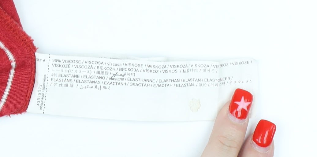 Step into style with this MNG Basics midi skirt, perfect for adding a touch of flair to your wardrobe. Crafted for women, the skirt features a vibrant red hue with elegant white stripes, accentuating its flare style. Made from a high-quality Viscose and Elastane blend, this skirt ensures comfort and ease throughout your day, making it ideal for the warmer spring and summer seasons. The elastic waist provides a snug fit, and its midi length is both contemporary and versatile, suitable for casual occasions and capturing a chic, relaxed vibe. The jersey fabric feels soft against the skin, and the pull-on closure ensures hassle-free wear. Whether you're at a garden party or a weekend brunch, this skirt is a standout piece that pairs well with anything in your collection, from flats to wedge sandals. A true statement-maker that comes new with its original tags, ensuring your investment in quality. A standout addition to any collection.