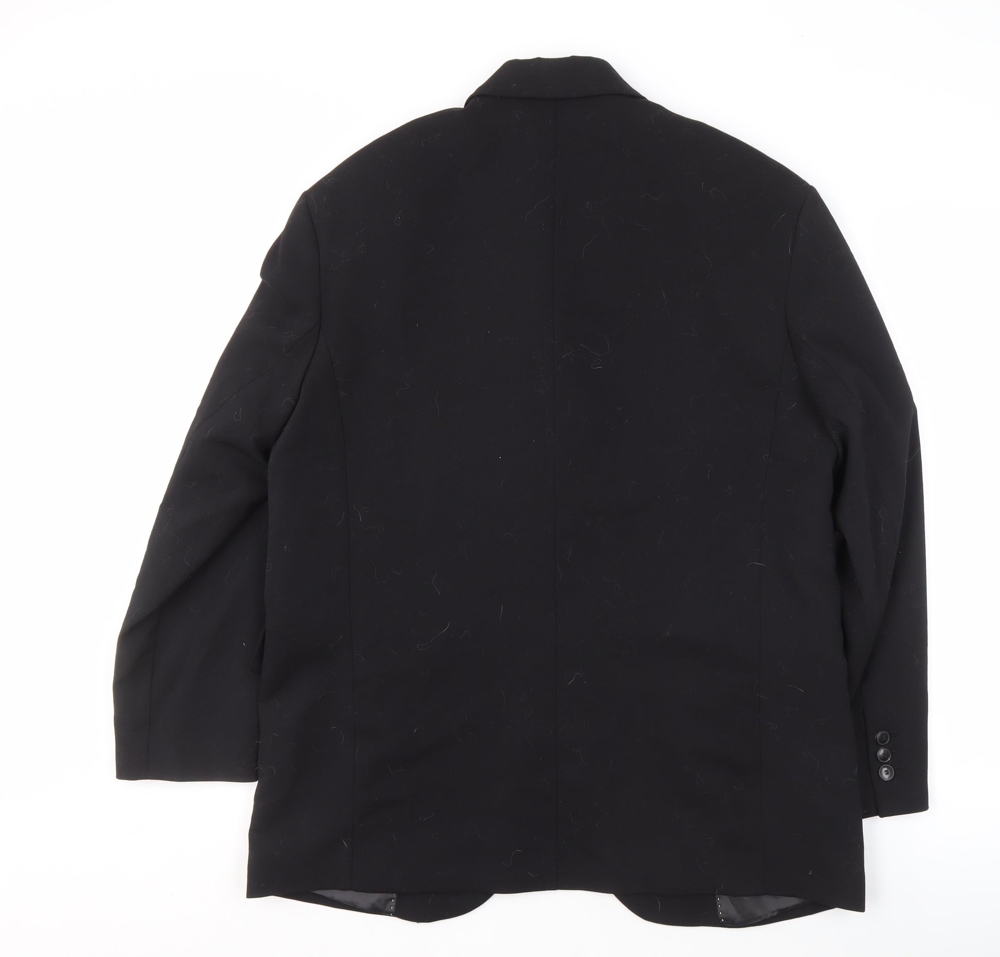Discover the elegance of this MNG Men’s Black Blazer, a perfect addition to any gentleman's formal attire. Crafted with 100% polyester, this blazer boasts a polished and refined appearance, ideal for business or formal occasions. The sleek black colour paired with the notch lapel style and single-breasted cut lends a timeless sophistication to your wardrobe. Whether you're attending a business meeting or a formal event, this jacket assures you stand out with class and elegance.Available in size XL, this blazer provides a comfortable and flattering fit. The one-button front adds modernity, allowing for easy wearing and immediate style impact. The two-button sleeve detail further accentuates its sophisticated look. With a polyester lining, the jacket not only feels smooth but ensures durability and comfort all day.This jacket is suitable for the man who appreciates attention to detail and high-quality craftsmanship. Though lint is slightly visible, the overall garment is in excellent condition, ready to elevate your fashion stakes at any moment. Dry clean only, this piece requires little care, ideal for the busy modern man.Embrace the versatility of this classic black blazer – your reliable companion for weddings, travel, or business ventures. This piece is a practical choice for any season, ensuring you are always prepared and stylish, no matter the occasion.